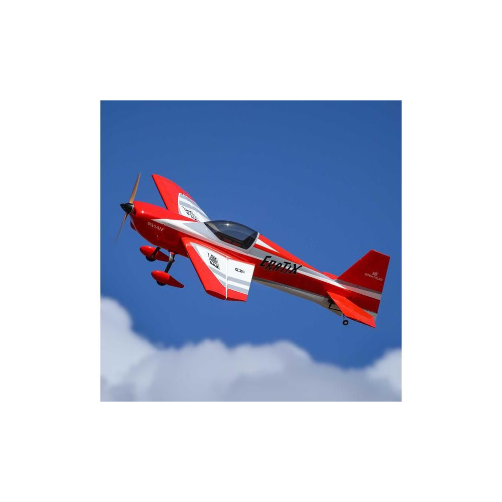 E-flite Eratix 3D SWS 1,6m-es távirányítású modell akrobatikus repüléshez , fa szerkezettel és UltraCote fóliával . Könnyű modellösszeszerelés. Opcionális oldalszárny-hajtómű generátorok (SFG), karbon futómű. 5055-500Kv-os motor, Spektrum 100A 6S vezérlő telemetriai támogatással, szervók és vevő AS3X és SAFE rendszerekkel.
