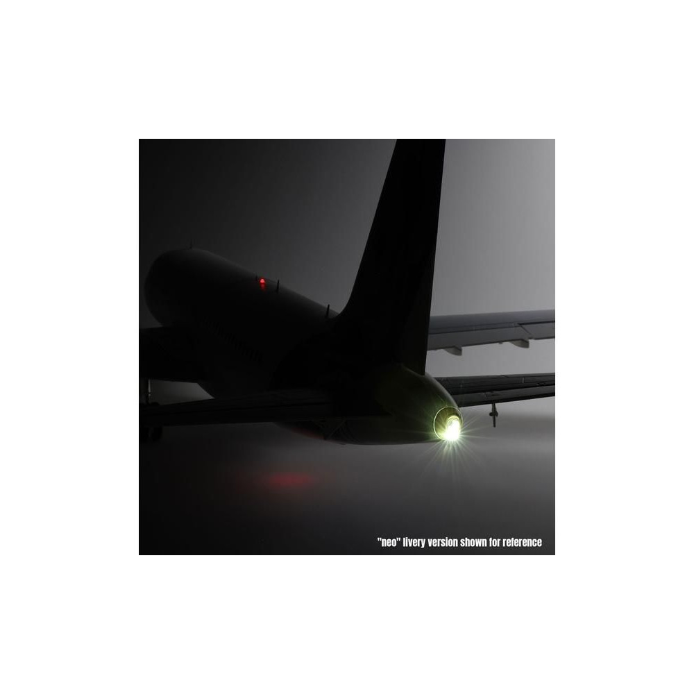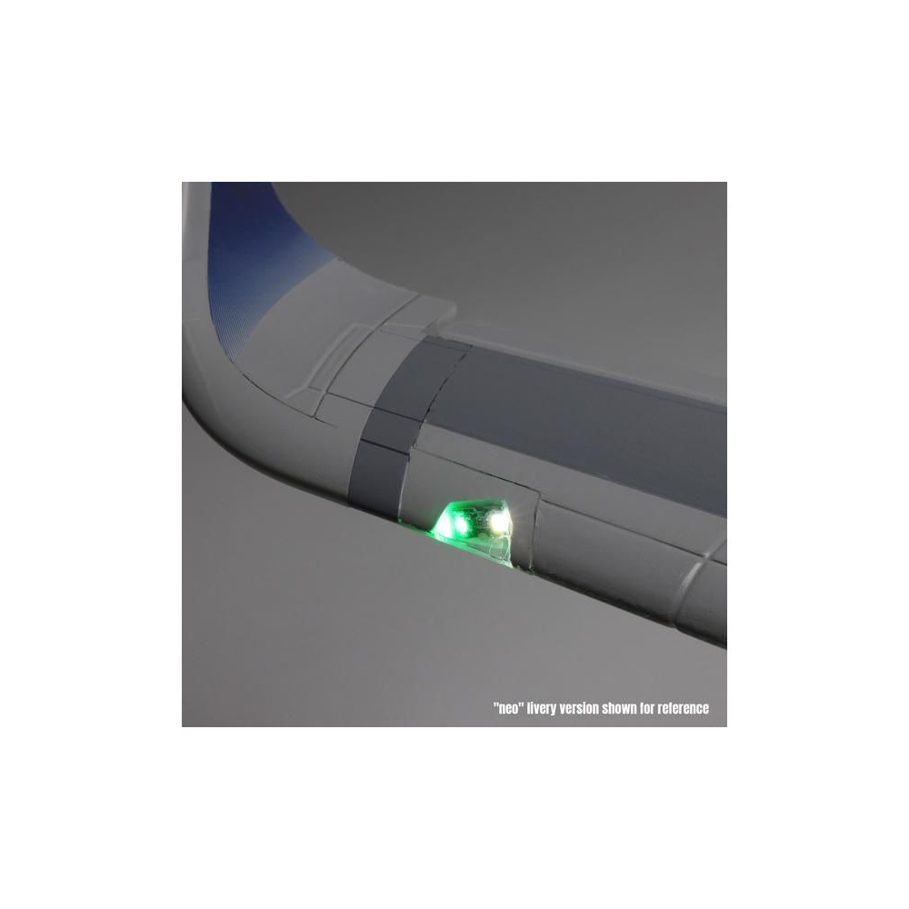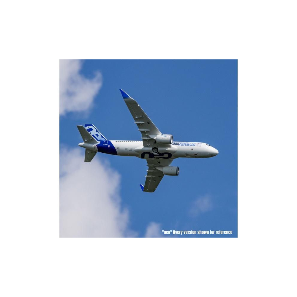 A kompozittal erősített EPO anyagból készült könnyű repülőgéptörzs felületkezeléssel és az Airbus speciális "neo" sémájával érkezik. Az összeszereléshez nincs szükség ragasztóra, a kétrészes szárny egyszerűen felszerelhető a kényelmes autóban való szállítás érdekében. Nyolc digitális szervomotor csatlakozik a kormánylapátokhoz gömbcsuklós összekötőrudakon keresztül, így minden sebességnél precíz és megbízható vezérlést biztosít. A funkcionális jellemzők közé tartozik a LED navigáció, a stroboszkóp és a leszállófények, a fékszárnyak és az elektromos futómű, amely szintén lengéscsillapítókkal és nagy kerekekkel van felszerelve, így nemcsak kemény, sík felületekről, hanem füves területekről is fel- és leszállhat. Mindez együtt egy olyan polgári repülési ikonmodellt alkot, amellyel repülésről repülésre élvezni fogja!