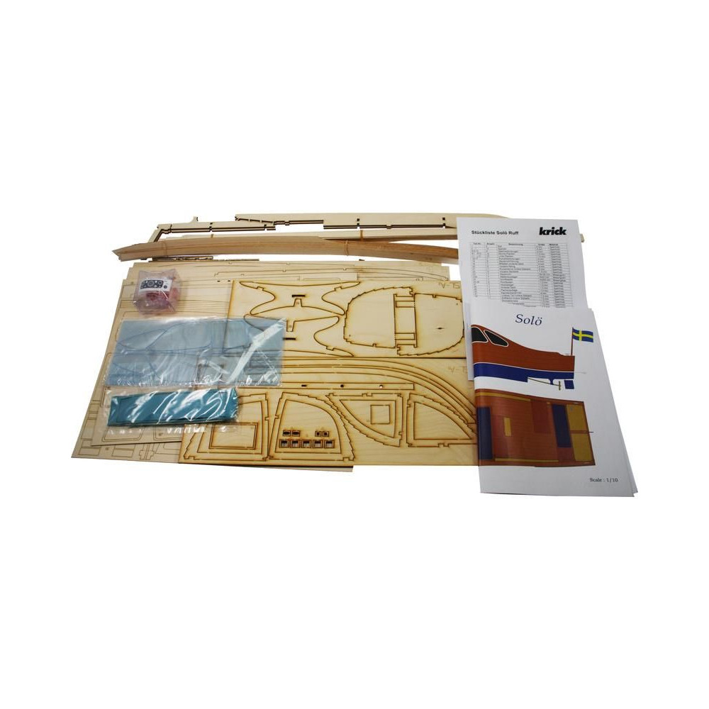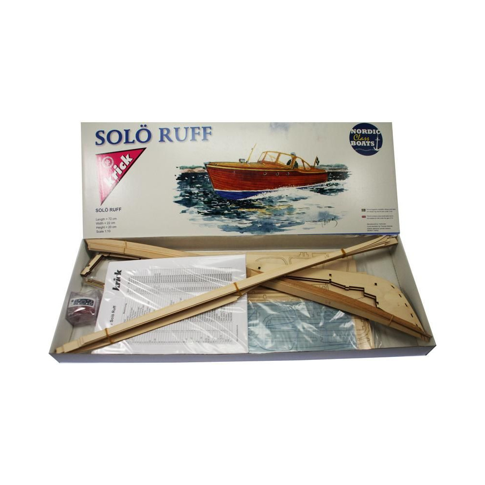 A Nordic Claas Boats Solö Ruff Daycruiser 1:10 méretarányú, 1965-ös modelljének készlete. A modell 720 mm hosszú, és összeállítható nem úszó statikus makettként, vagy felszerelheti saját RC felszerelésével és vízre bocsáthatja.