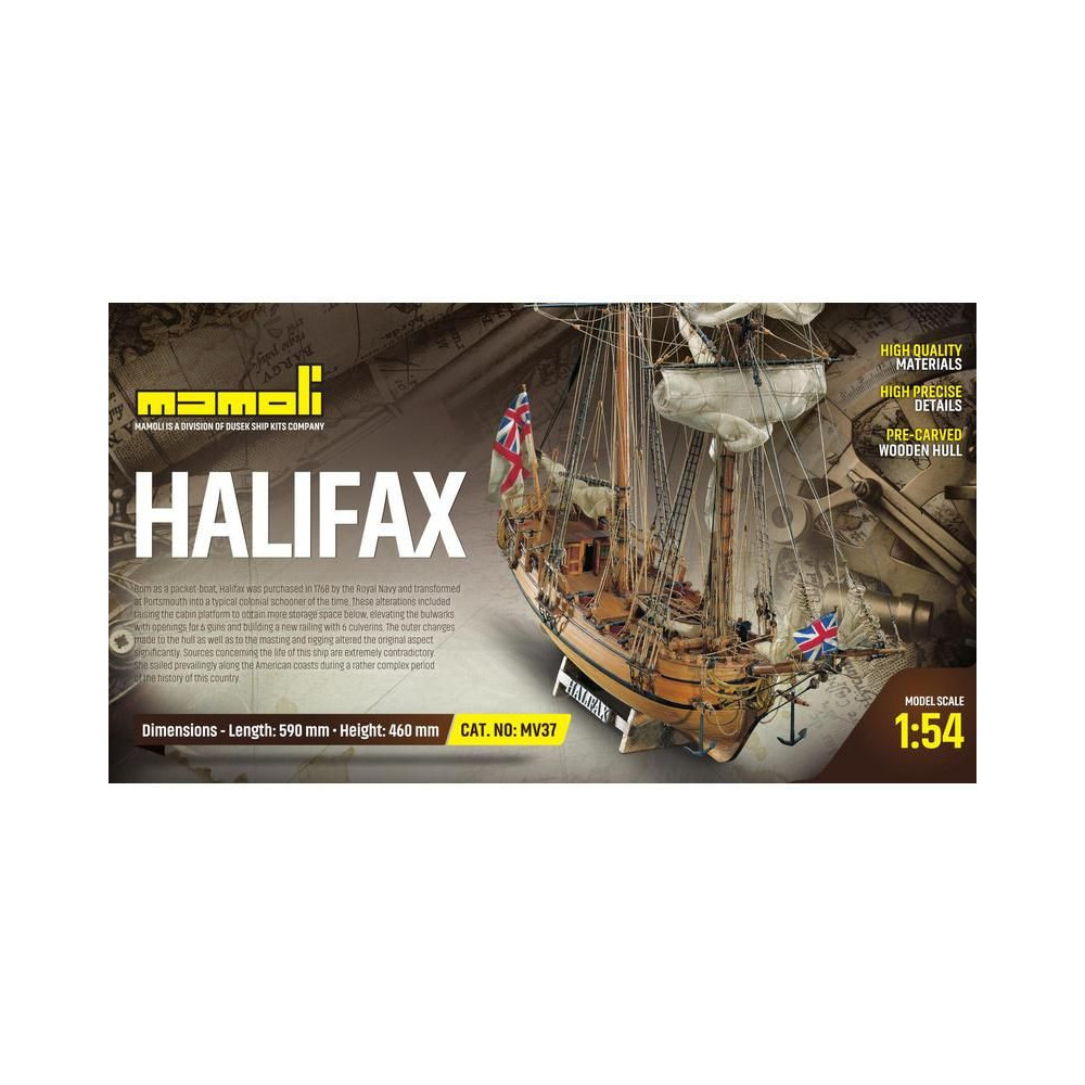 Előre varrott vitorlák készlete hajóépítéshez - MAMOLI Halifax 1768 1:54.