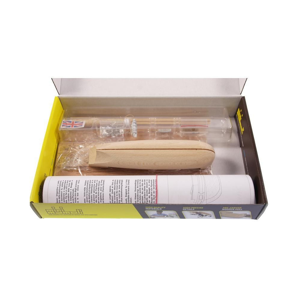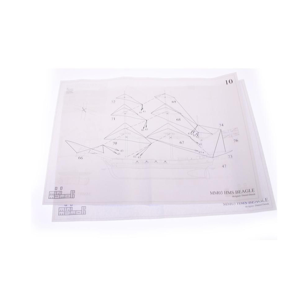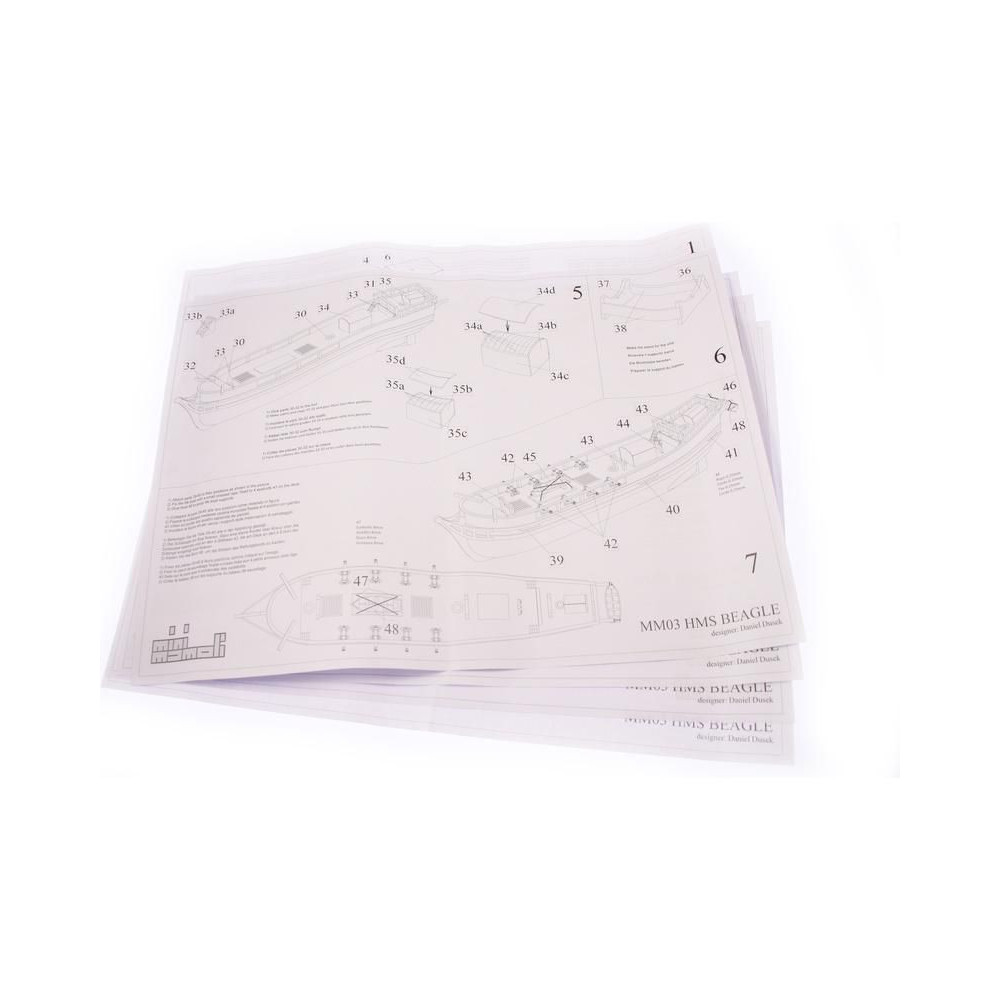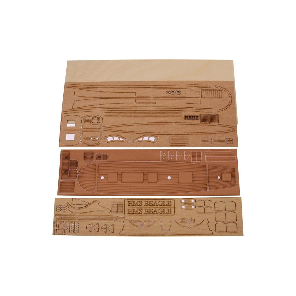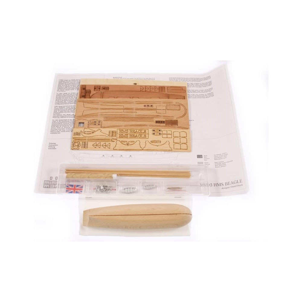 A H.M.S. Beagle modellje a Mini Mamoli sorozatból, 1:121 méretarányban. A Brit Királyi Haditengerészet hajóját először parti őrhajóként használták, később az ágyúk eltávolítása után tudományos célokra használták az Indiai- és Csendes-óceánon. A készlet faragott fa alkatrészeket, fém alkatrészeket, állványt és használati utasítást tartalmaz.