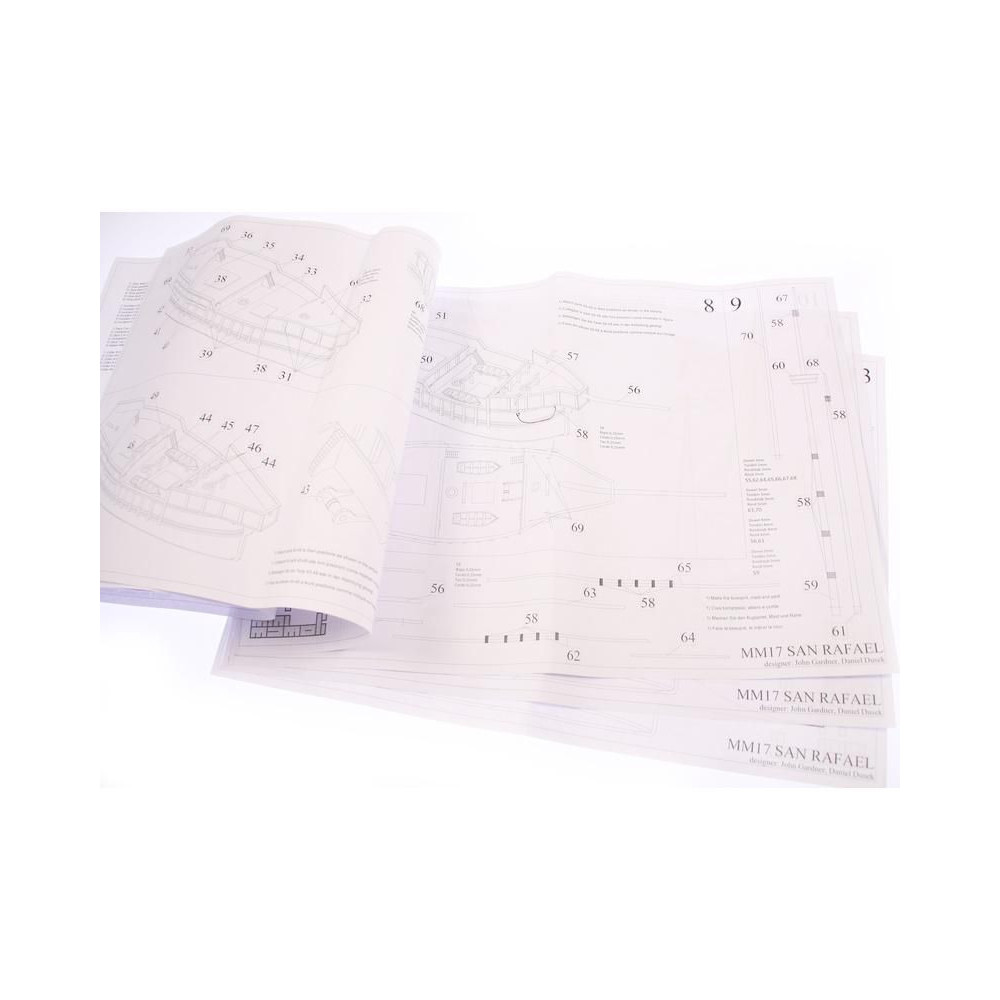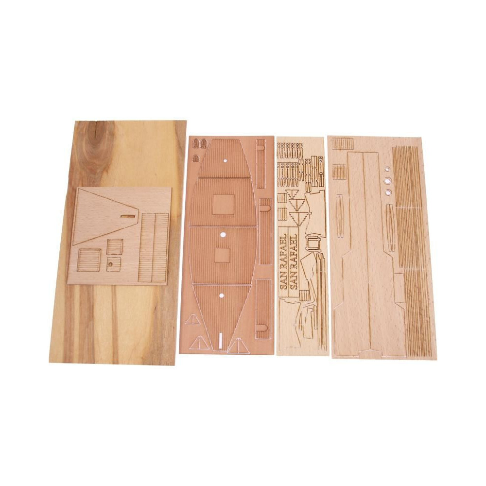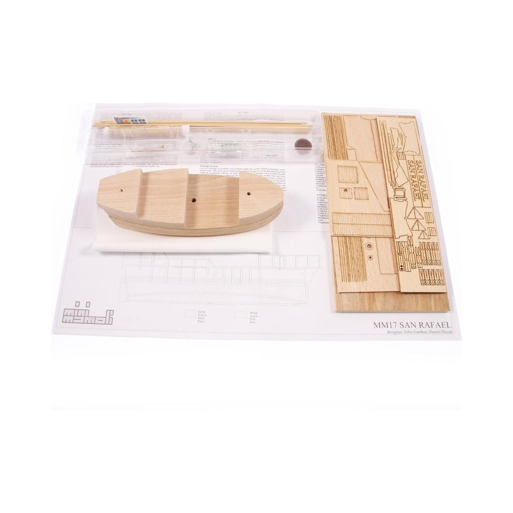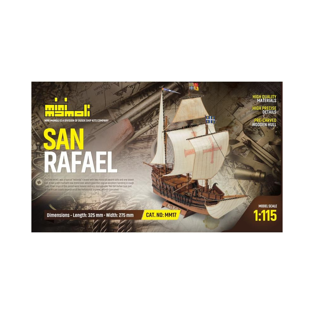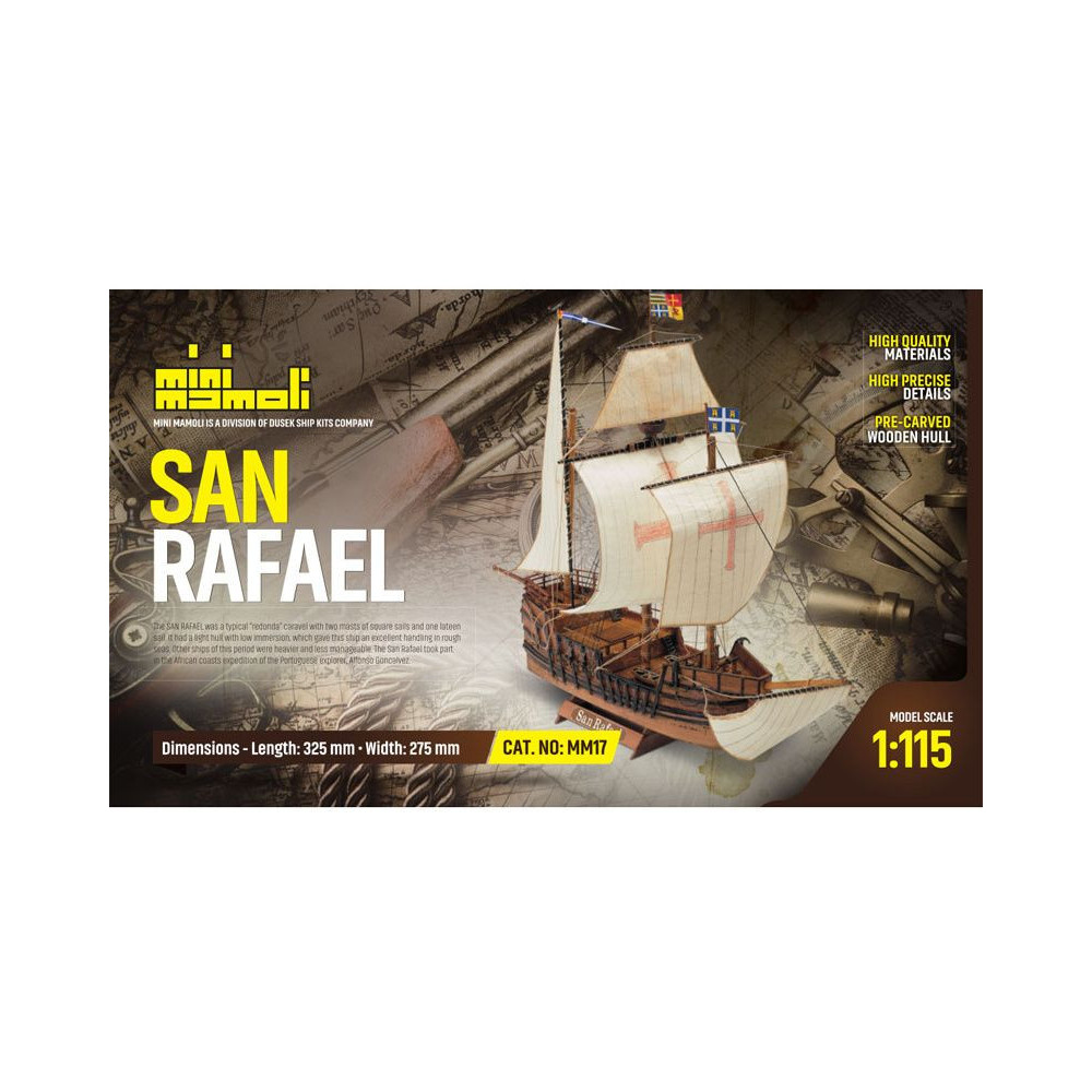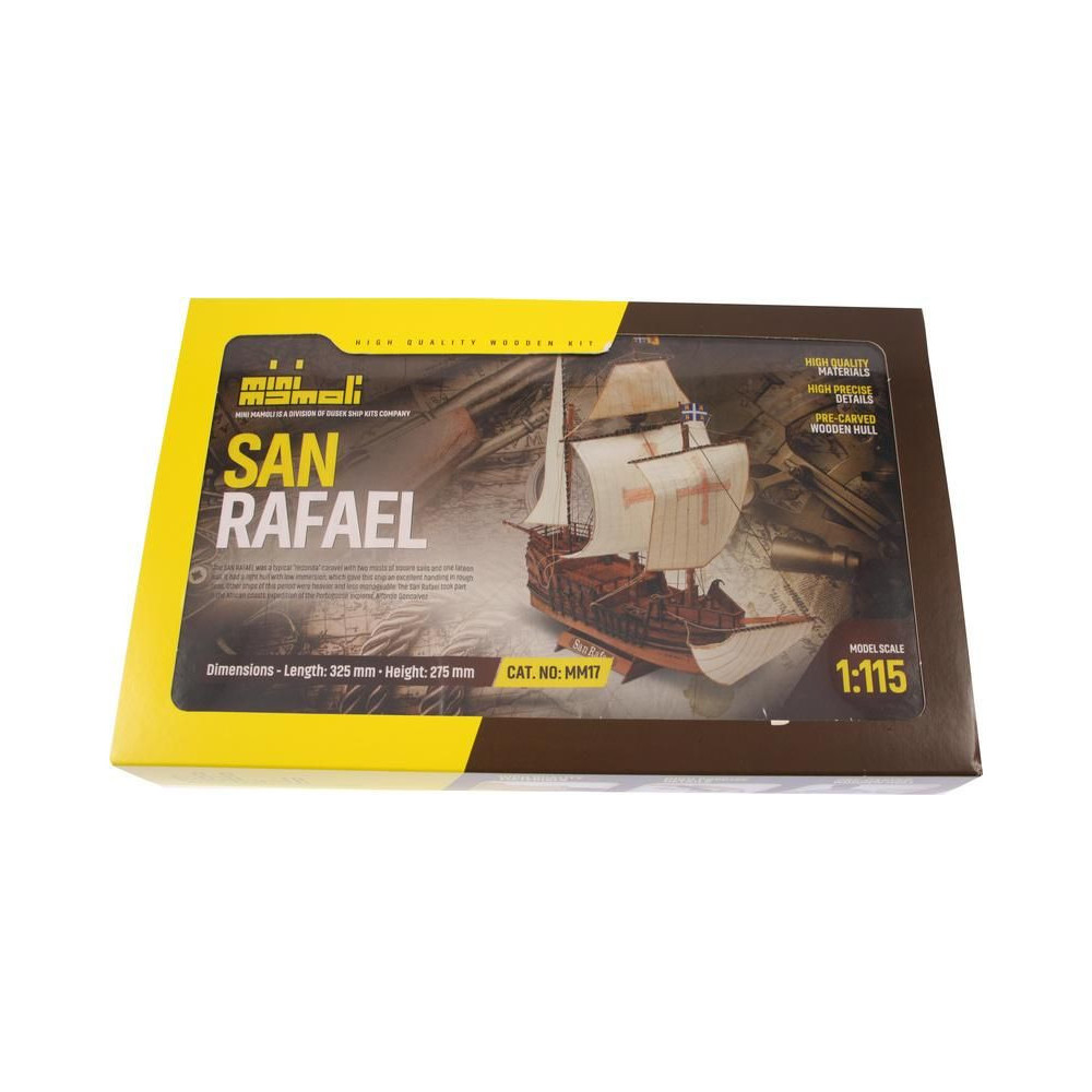 A San Rafael modellje a Mini Mamoli sorozatból, 1:115 méretarányban. A készlet faragott fa alkatrészeket, fém alkatrészeket, állványt és használati utasítást tartalmaz.
