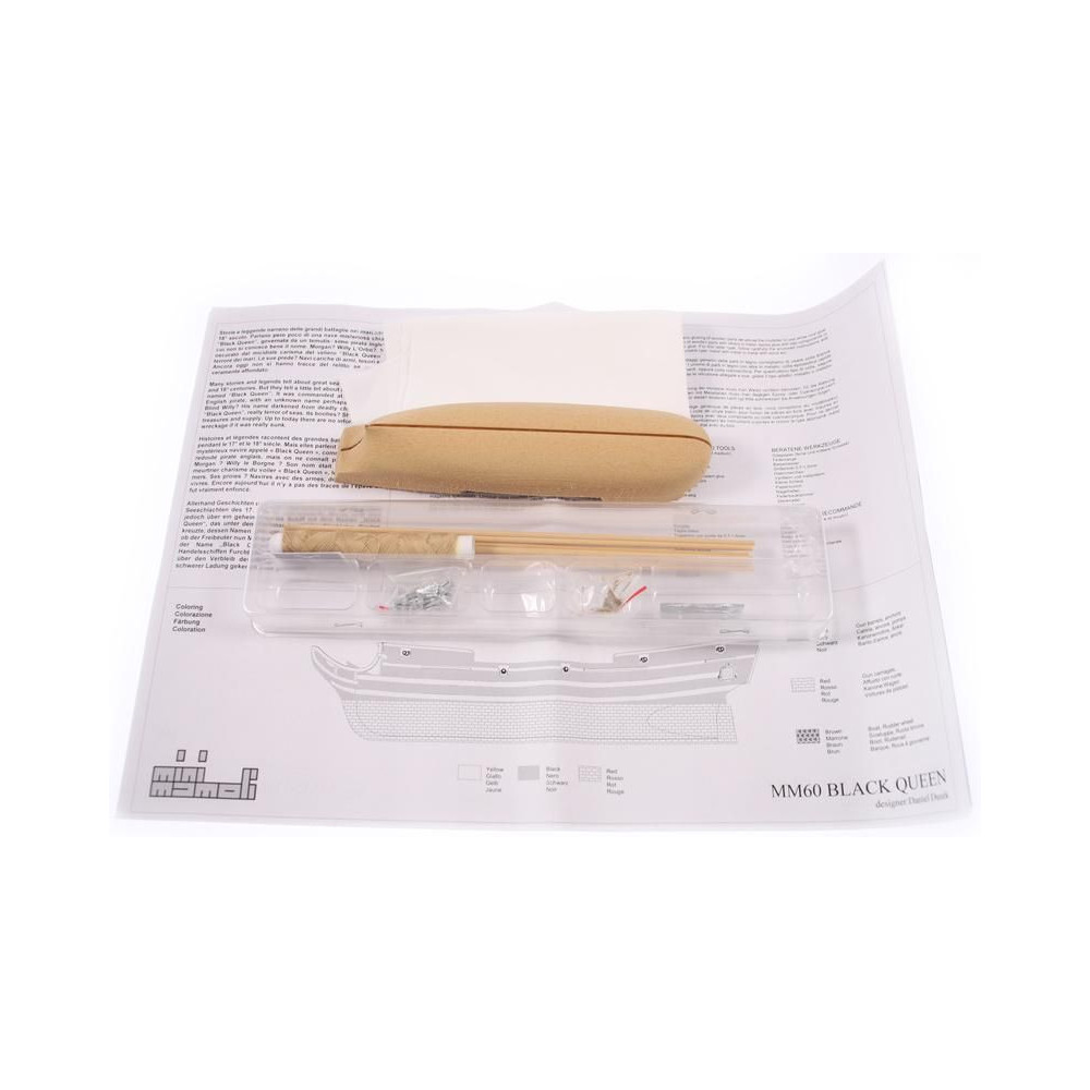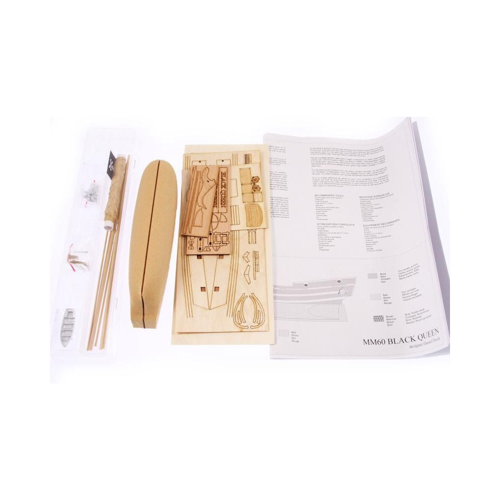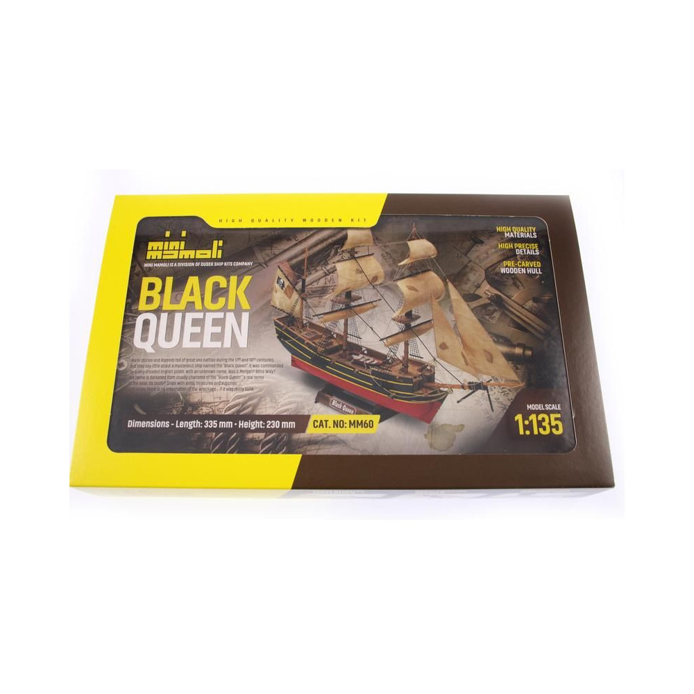 A Fekete királynő 1:135 méretarányú modellje a Mini Mamoli sorozatból. A modell ideális kezdőknek. A készlet faragott fa alkatrészeket, fém alkatrészeket, állványt és útmutatót tartalmaz.