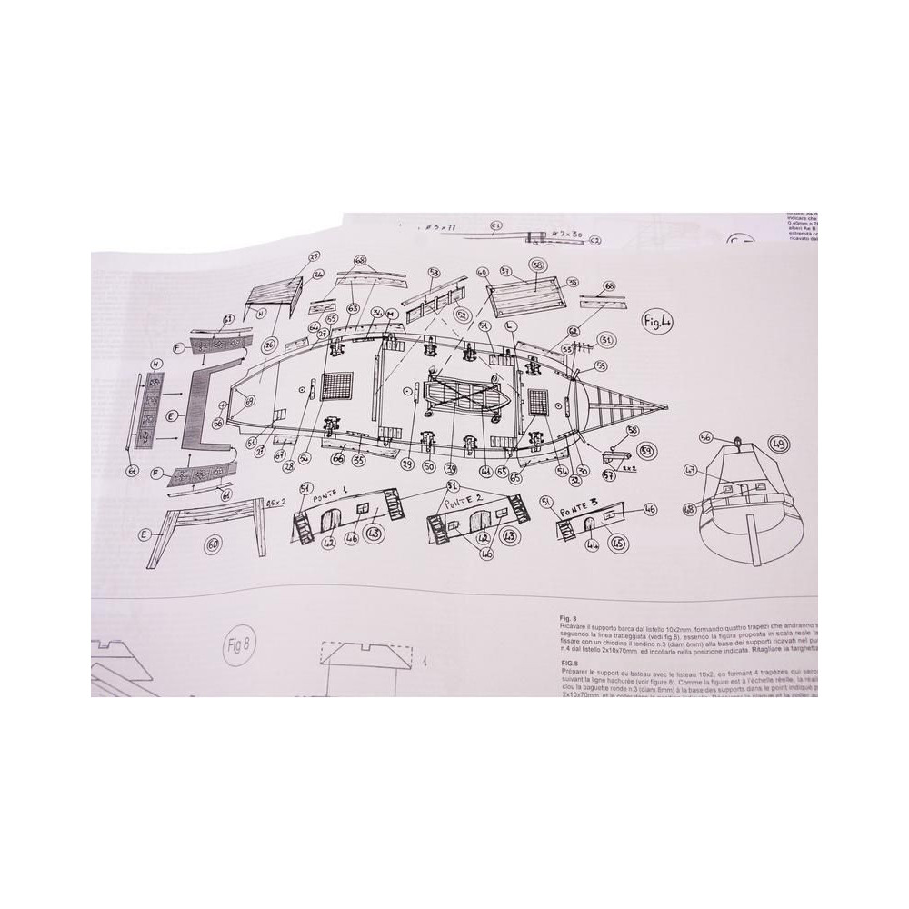 A készlet tartalmaz egy teljes rajzkészletet az építési eljárással, az alkatrészek gondosan be vannak jelölve a rajzon, és a modell egyes részeinek listája is megtalálható.