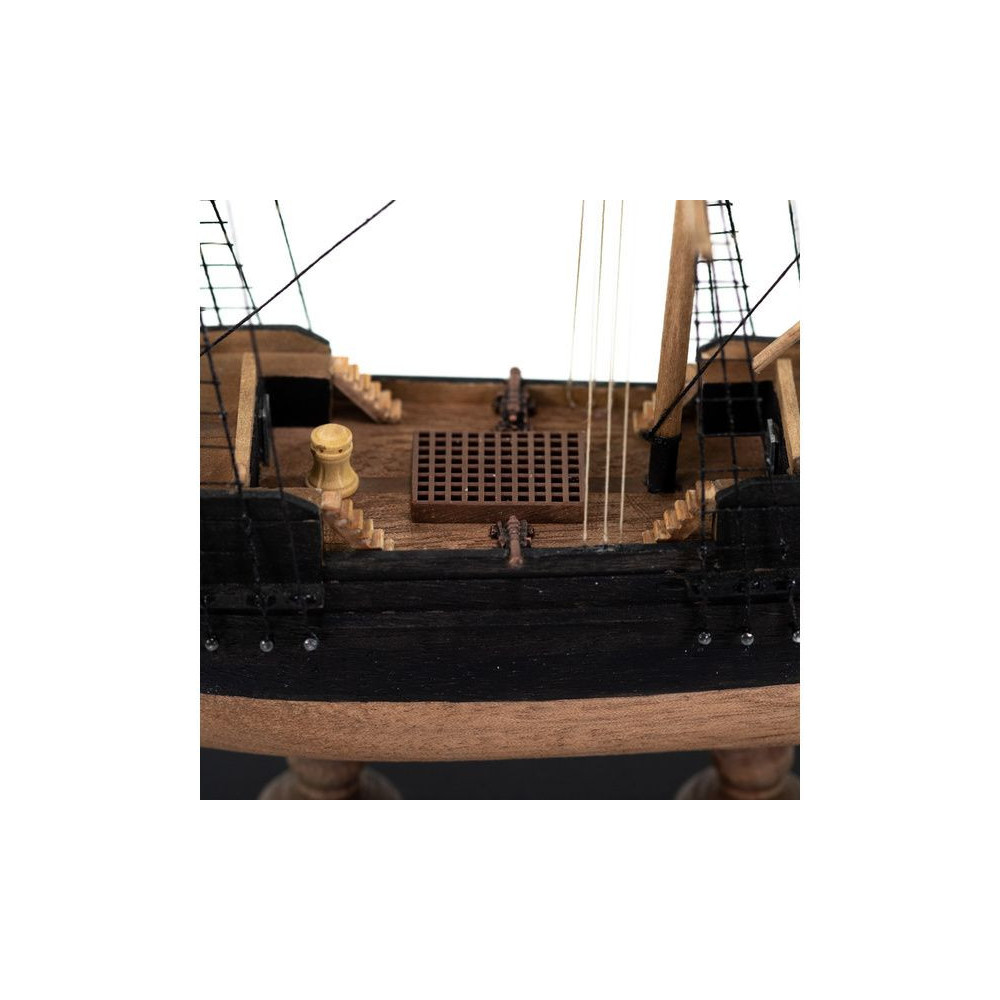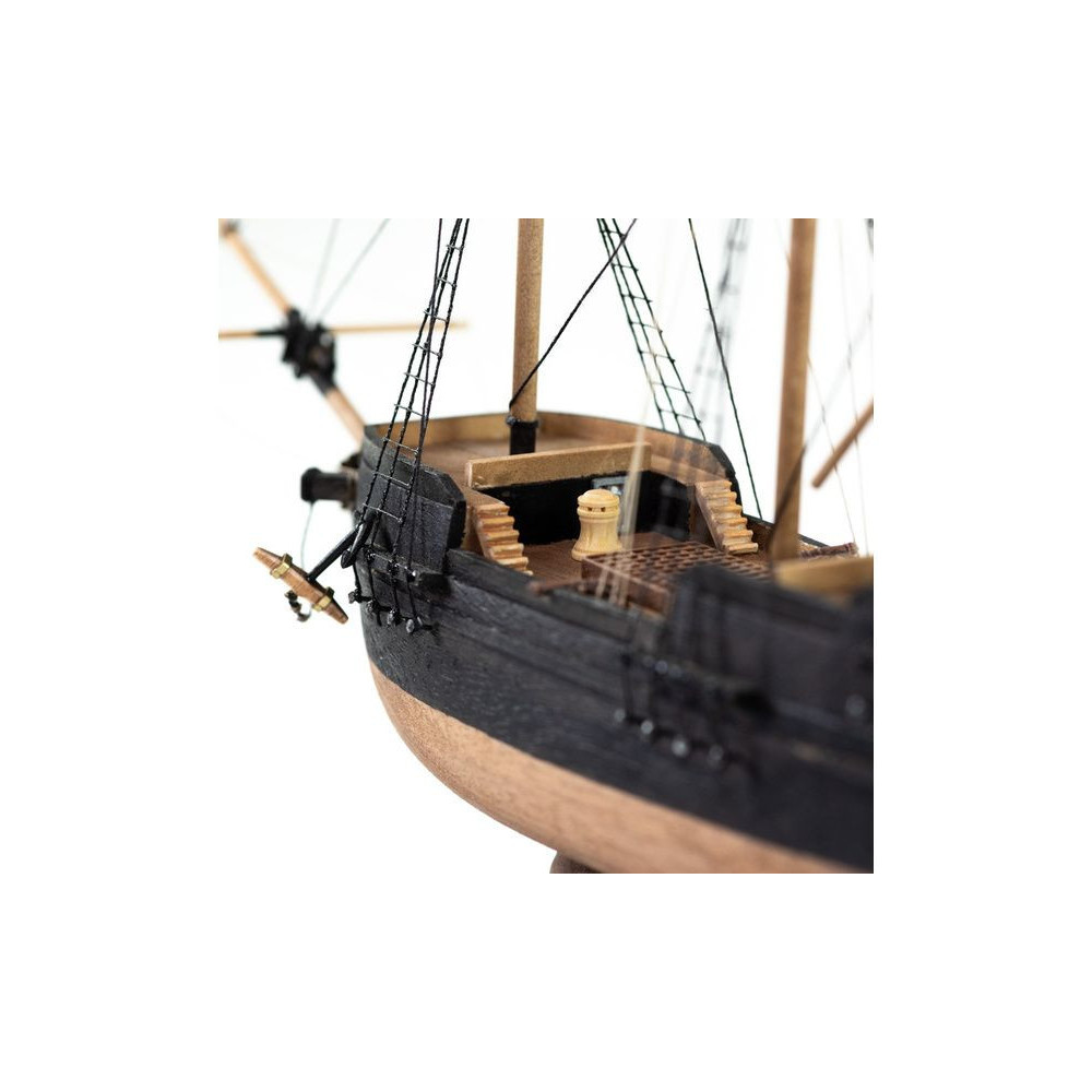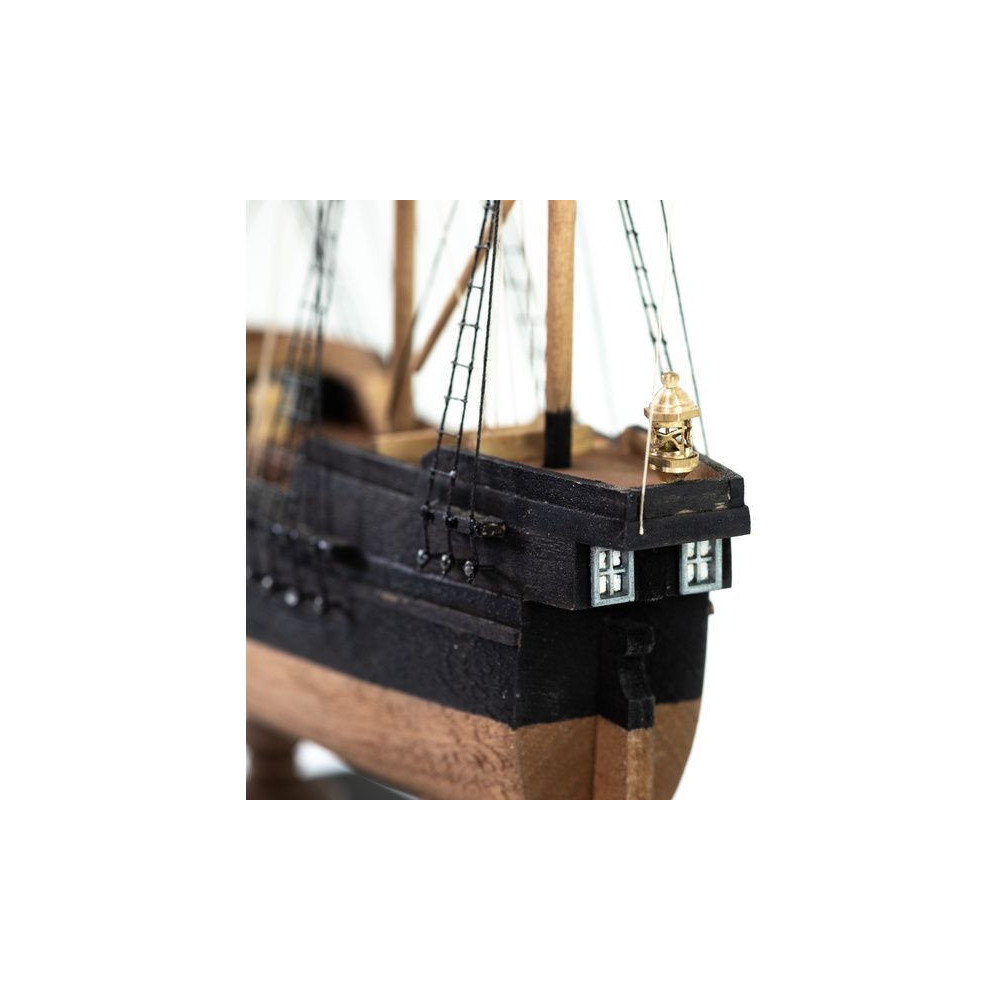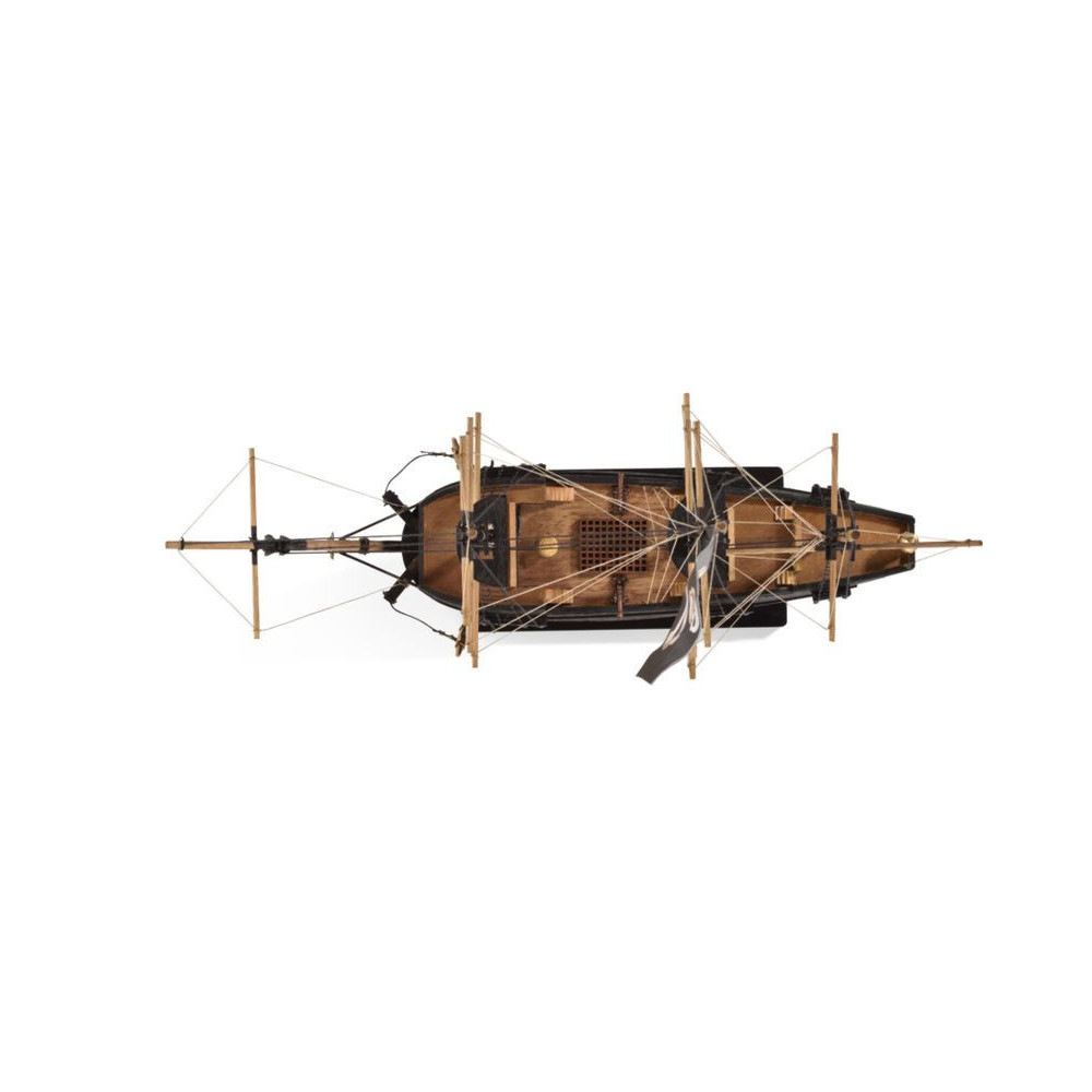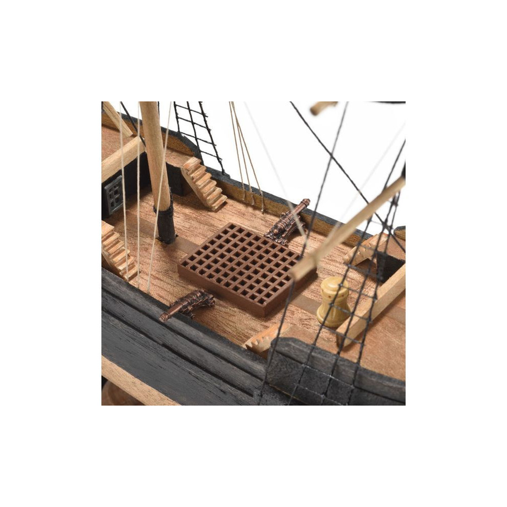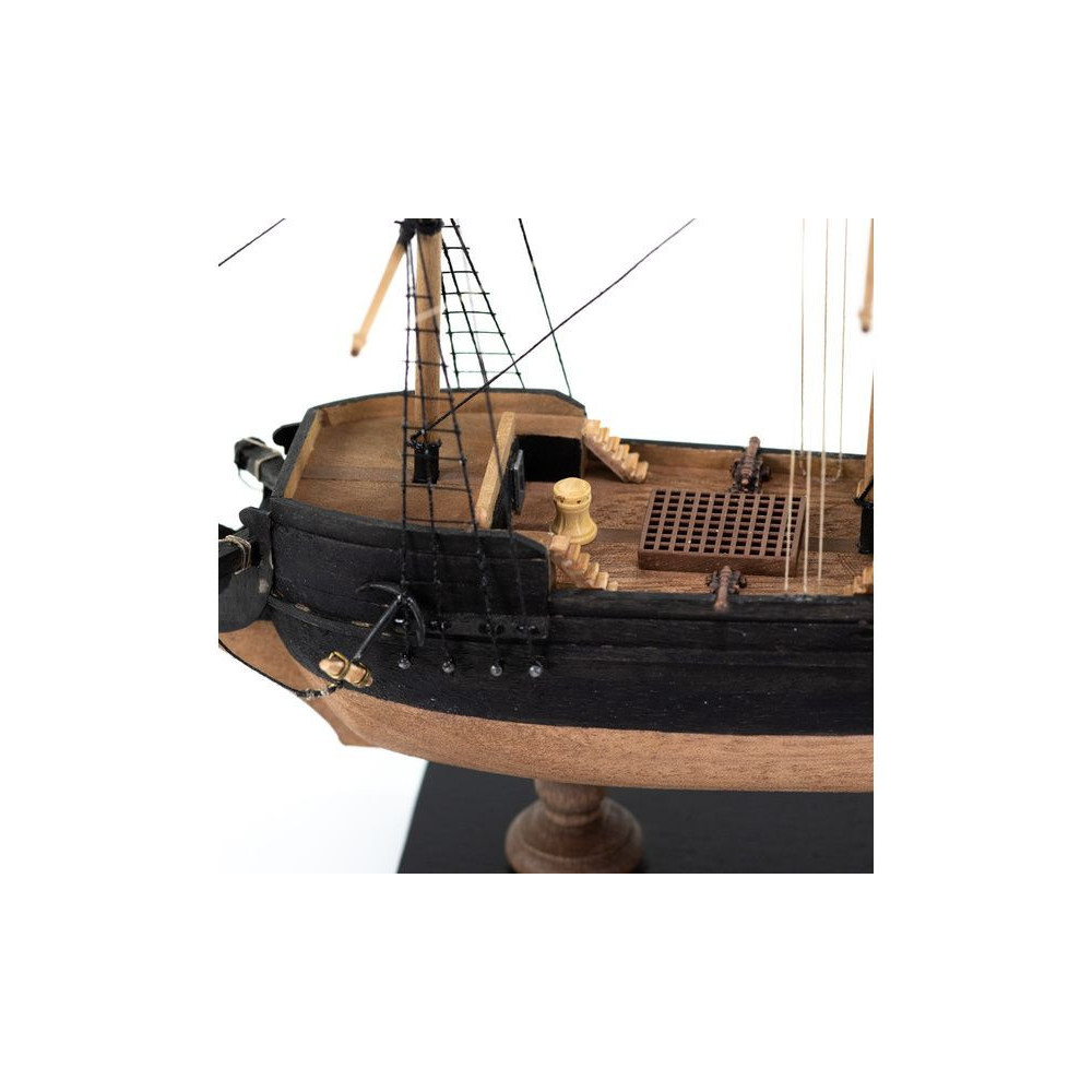AMATI AMATI kalózhajó 1:135 Első lépés készlet. A kalózhajók az egyik legnépszerűbb hajómodellek közé tartoznak, ezért a First step kit sorozatot a kezdők számára hozták létre. A készlet tartalmaz egy kész fából készült hajótestet, kivágásokkal ellátott kiel-t és apró kiegészítőket. A vitorlákat nem tartalmazza.