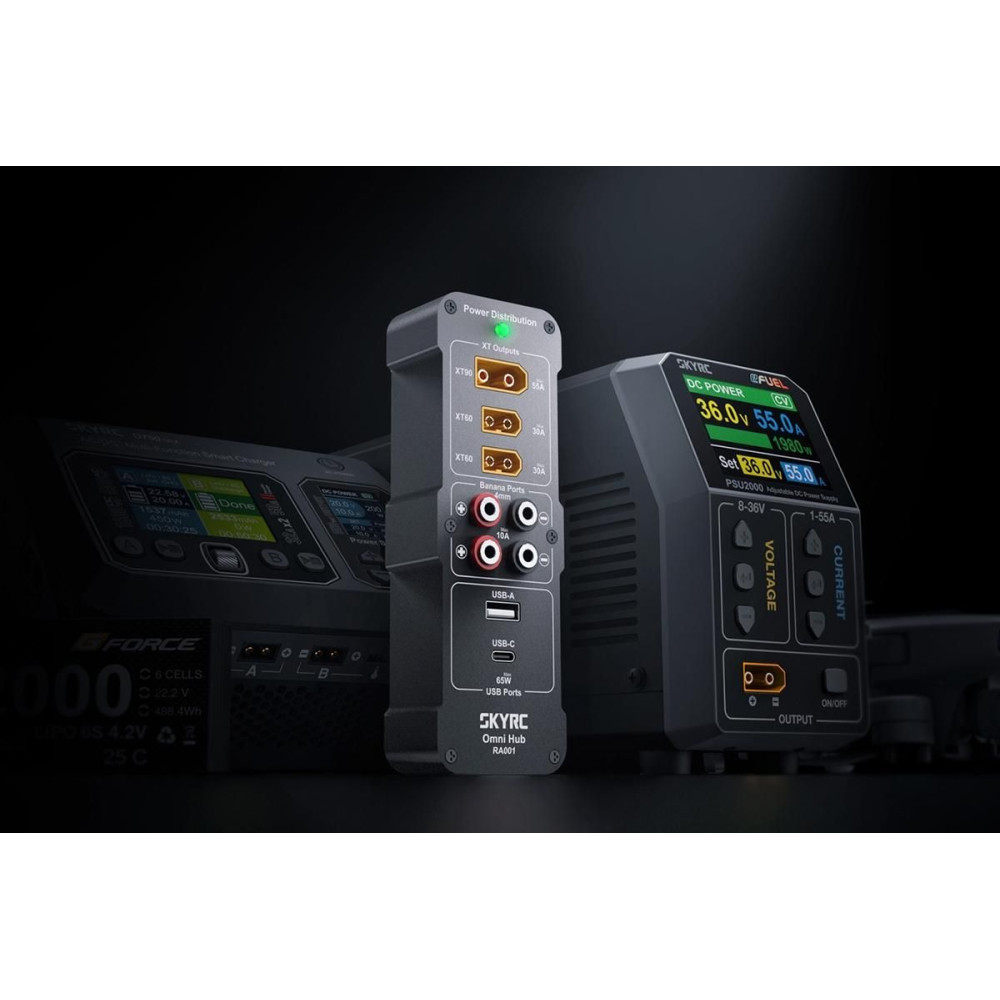 A SkyRC Omni Hub egy táp- és töltőközpont, amely az eFUEL PSU2000 stabilizált tápegységgel használva lehetővé teszi az 1980 W teljesítmény elosztását több modellező eszköz (töltők stb.) tápellátására és nagy energiaigényű digitális eszközök töltésére, amelyek így egyidejűleg is működhetnek. A kapcsolótáblát kifejezetten RC modellekhez és digitális elektronikus eszközökhöz tervezték.