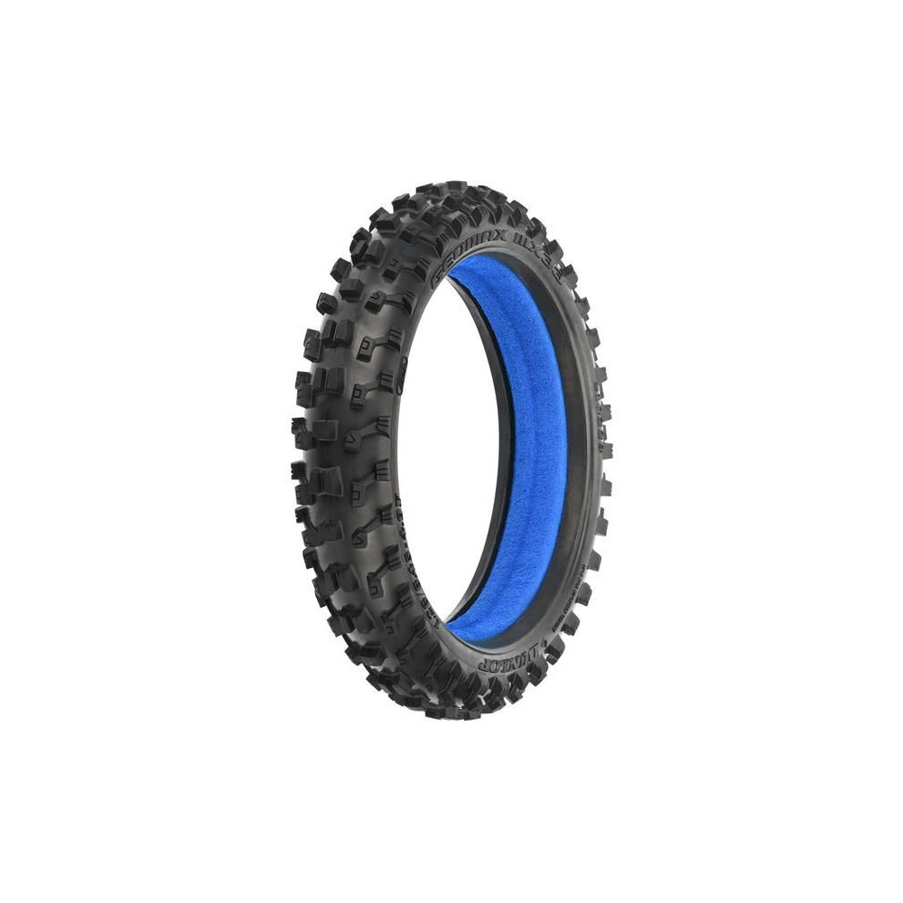 A profi és amatőr motocross versenyzők első számú választása világszerte, és most a Dunlop legendás stílusa és teljesítménye a Losi® Promoto-MX RC motorra is eljutott! A gumiabroncs megerősített futófelületi sarkokkal rendelkezik, szuper agresszív megjelenést biztosítva. A Dunlop multi-block rendszerét lemásolták, megváltoztatva a futófelület magasságát és szögeit a gumiabroncs oldalain és közepén keresztül. Ez lefordítva azt jelenti, hogy a sárba harapva páratlan tapadást és kezelhetőséget biztosít. Az MX33 a V2 Bead Pro-Line stílust használja, amely mind a könnyű használat, mind az esztétika szempontjából előnyös. A buggy-stílusú tárcsaülés széles területe gyerekjátékká teszi a gumiabroncsok ragasztását. Ez a gumiabroncs csak a V2 Bead stílussal rendelkező Pro-Line kerékpárokhoz alkalmas, mint például a Bullyspoke kerékpárok (elöl PRO283203 ). Ez a gumiabroncs kiváló minőségű, tartós zárt cellás habbetétet tartalmaz.
