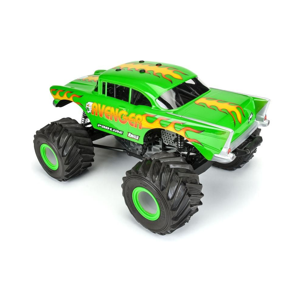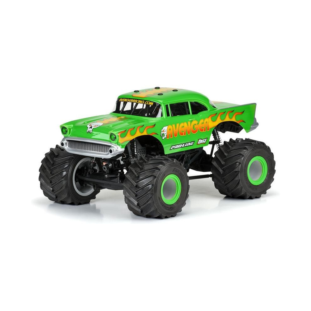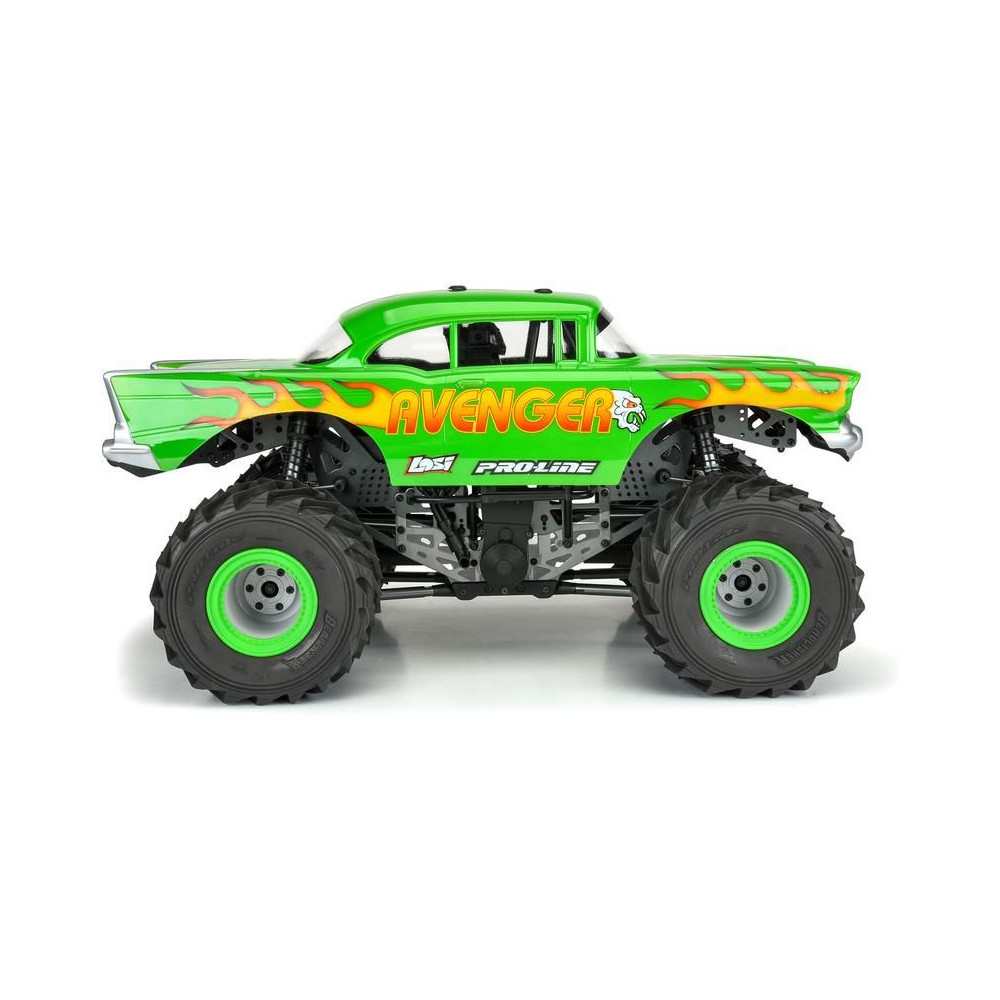 Az 1957 Chevy® Bel Air karosszéria a Losi® LMT RC modellautóhoz illeszkedik. Az Avenger Monster Truck már több mint 20 éve a turné egyik főszereplője, a tulajdonos Jim Koehler több világbajnoki cím megszerzése során kiérdemelte a "Mr. Excitement" nevet. Jim 1957-es Bel Air lángja a rajongók kedvencévé vált, és az évek során számos színváltozatban használták. Most a Pro-Line összefogott a Team Scream Racinggel és a Chevrolet®-vel, hogy az RC Monster Truck rajongóknak lehetőséget adjon arra, hogy megalkossák saját Avengerüket!