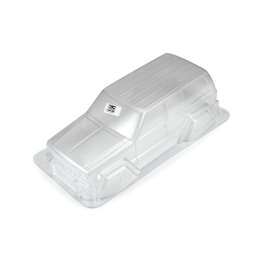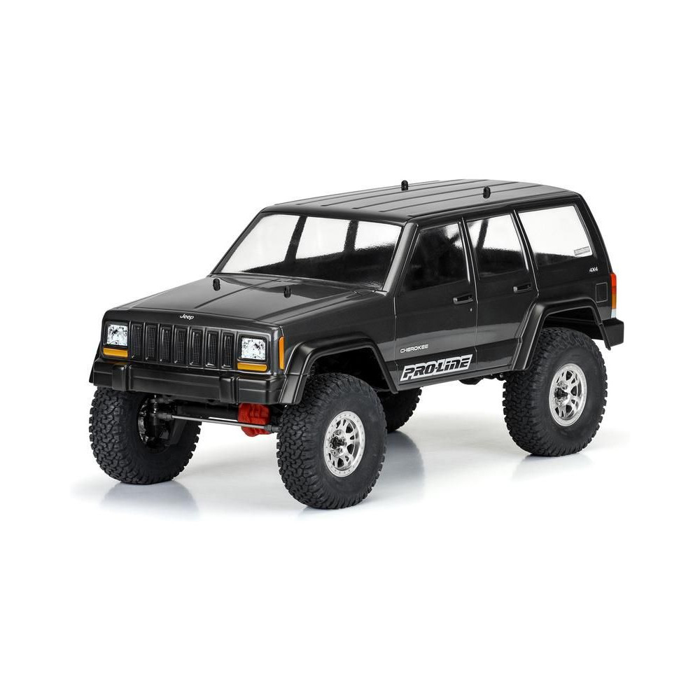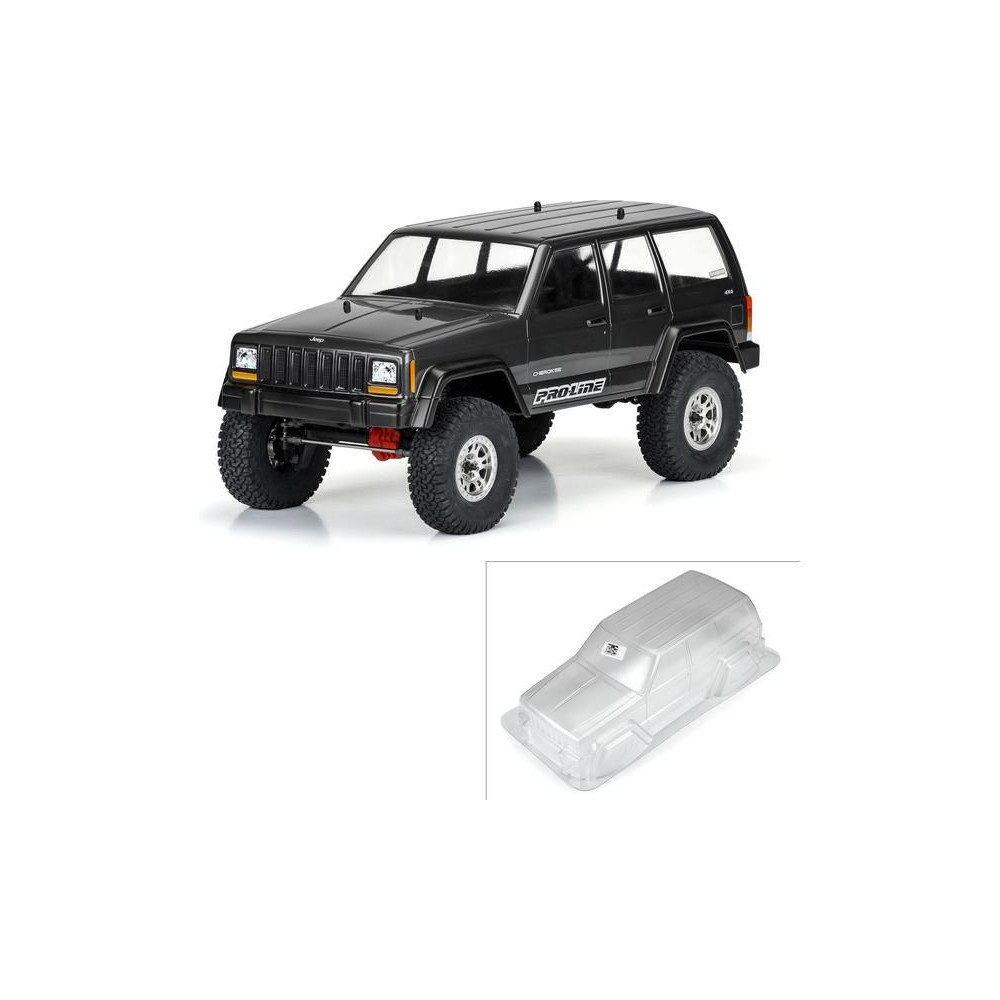 Karosszéria Pro-Line 1:10 2001 Jeep Cherokee 313mm tengelytávval. Alkalmas expedíciós és rock crawler RC modellekhez (SCX10). Tartós lexánból készült átlátszó karosszéria, festést igényel. Ablakmaszk és matricalap a megjelenés teljessé tételéhez.