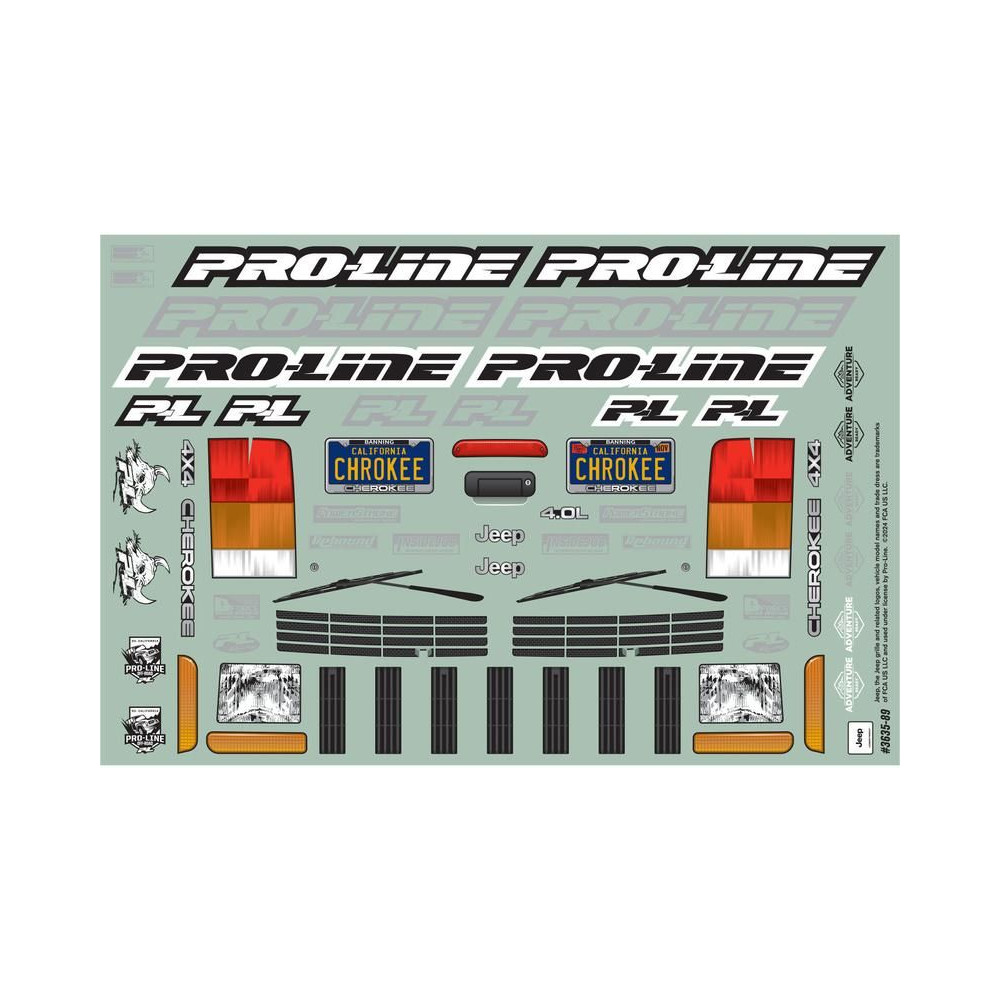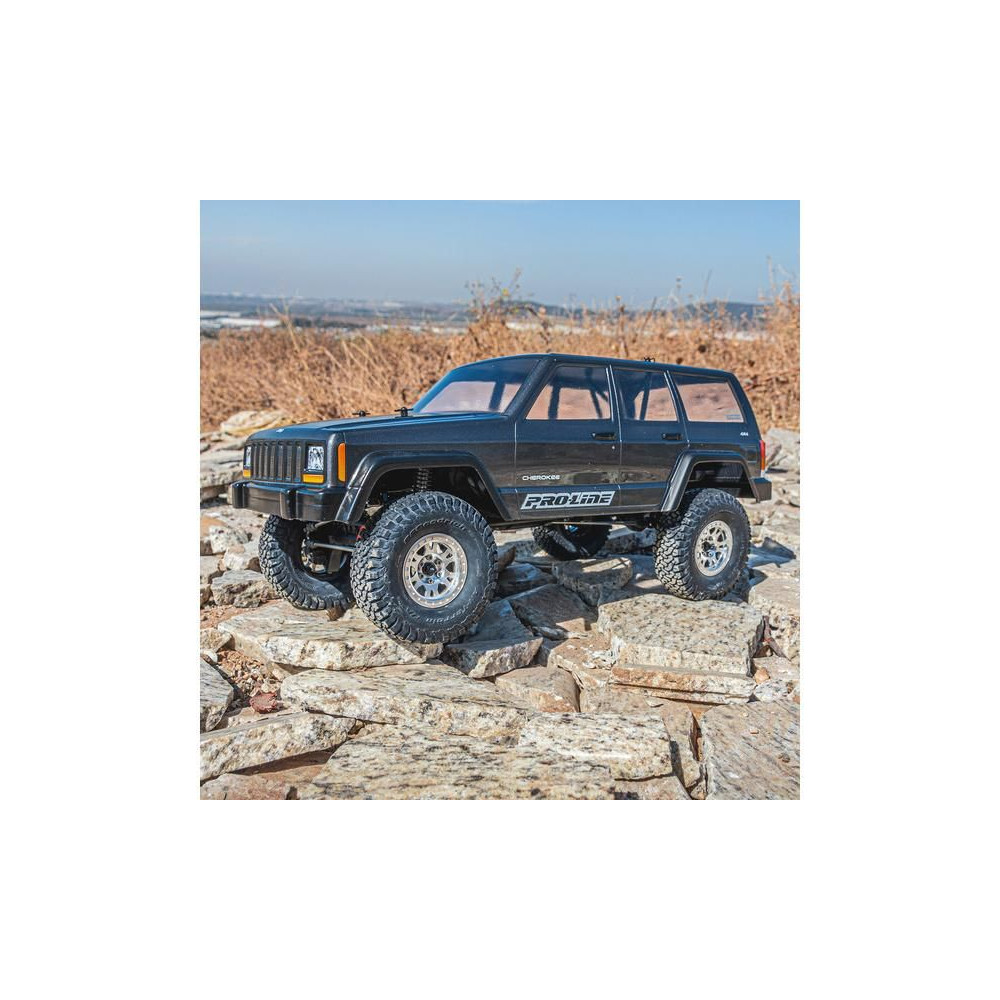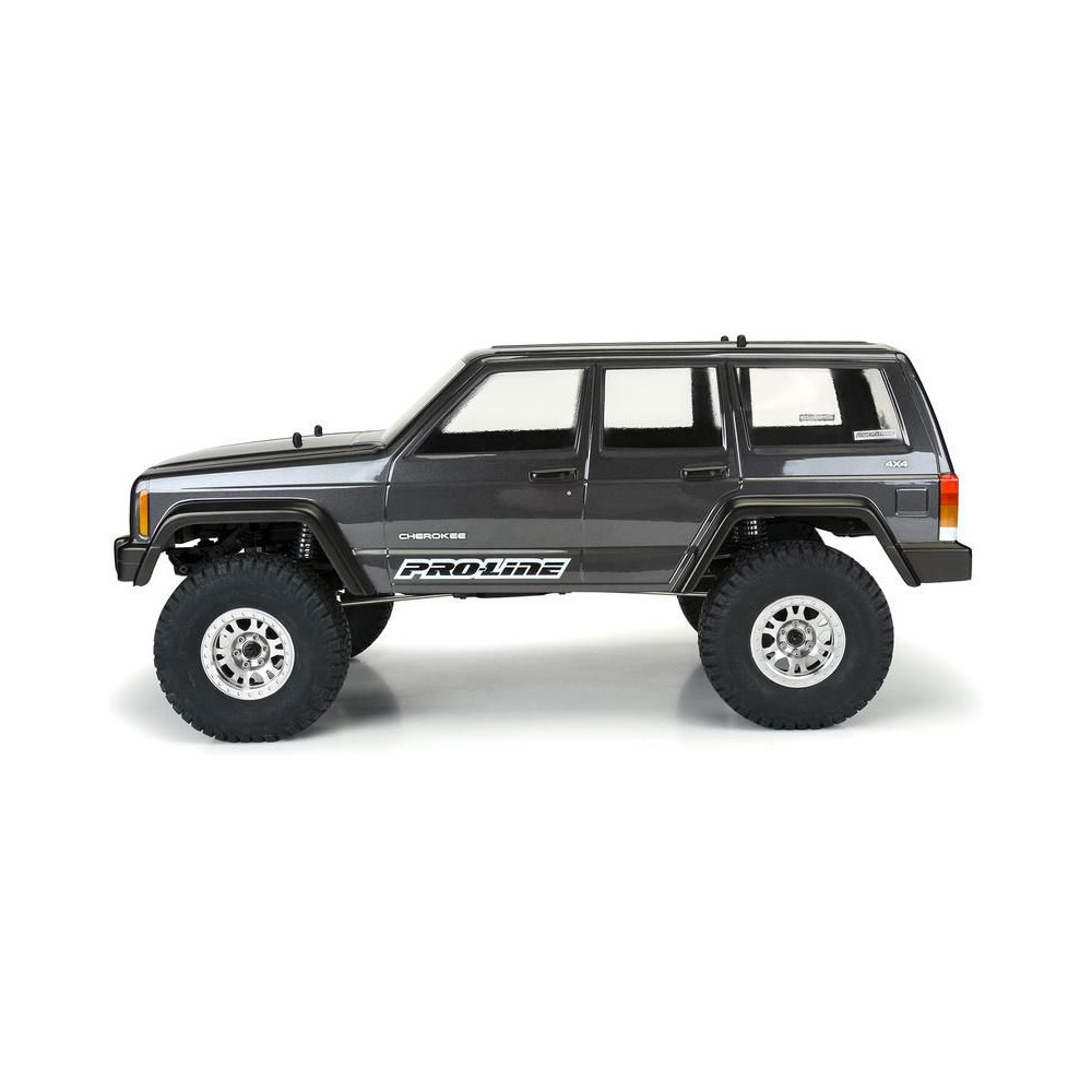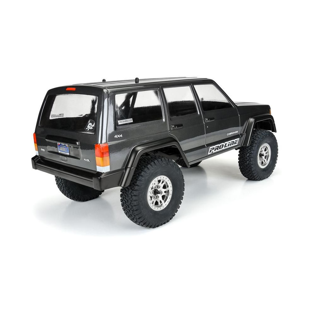 Karosszéria Pro-Line 1:10 2001 Jeep Cherokee 313mm tengelytávval. Alkalmas expedíciós és rock crawler RC modellekhez (SCX10). Tartós lexánból készült átlátszó karosszéria, festést igényel. Ablakmaszk és matricalap a megjelenés teljessé tételéhez.