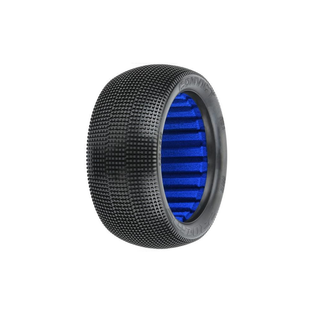 A Fugitive-ot úgy fejlesztették ki, hogy a valaha gyártott leghosszabb élettartamú versenyabroncs legyen, és ezt be is bizonyította azzal, hogy a legnehezebb körülmények között is megnyerte a világbajnokságot, miközben a futófelület maradványai is megmaradtak. A Convict a Pro-Line legújabb generációja, amely jobban kezeli az egyenetlenségeket, és kevesebb és nagyobb futófelületi távolsággal rendelkezik, így a kvalifikációhoz megfelelő sebességgel rendelkezik, miközben megfelelő mennyiségű futófelülettel rendelkezik a hosszú főfutamhoz. a Convict az Ön új gumiabroncsa a kvalifikációhoz és a főfutamhoz egyaránt!