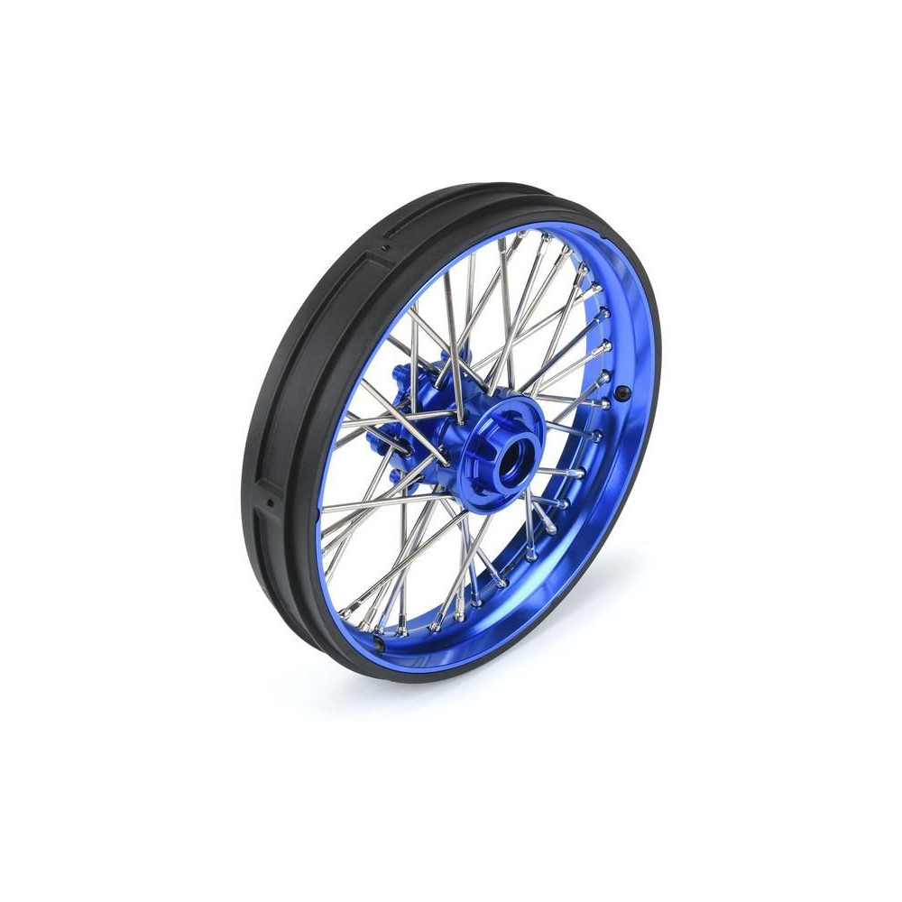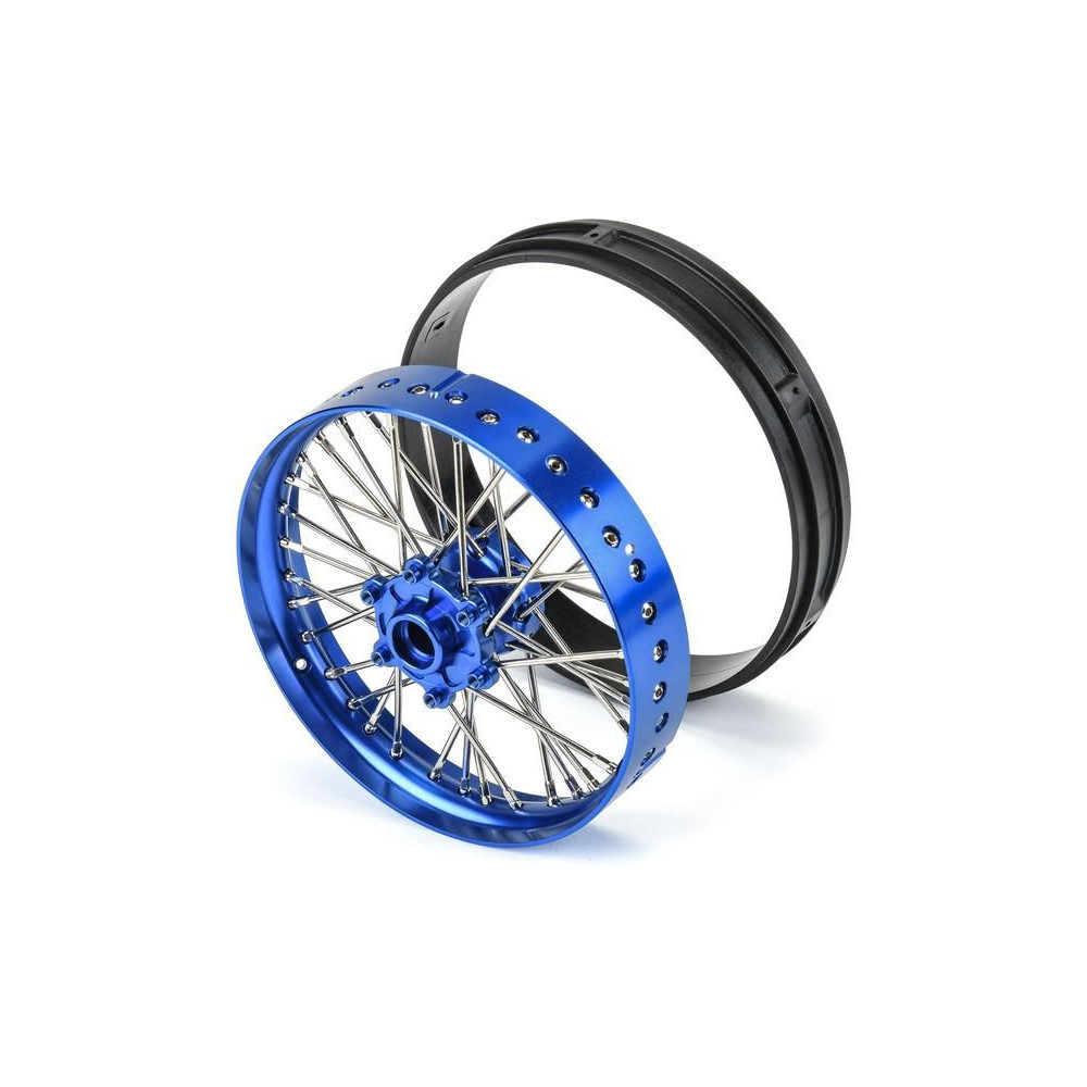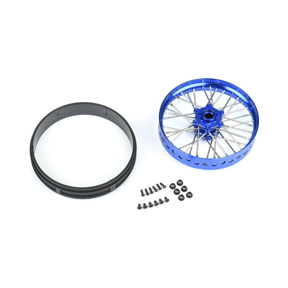 Tuning alkatrész Losi Promoto-MX RC modellekhez: Pro-Line első tárcsa Pro-Spec V2 Bead, alumínium, kék/kék. Összeszerelt tárcsa eloxált alumínium küllős kerékkel, horganyzott acél küllőkkel és rögzítő tartozékokkal.