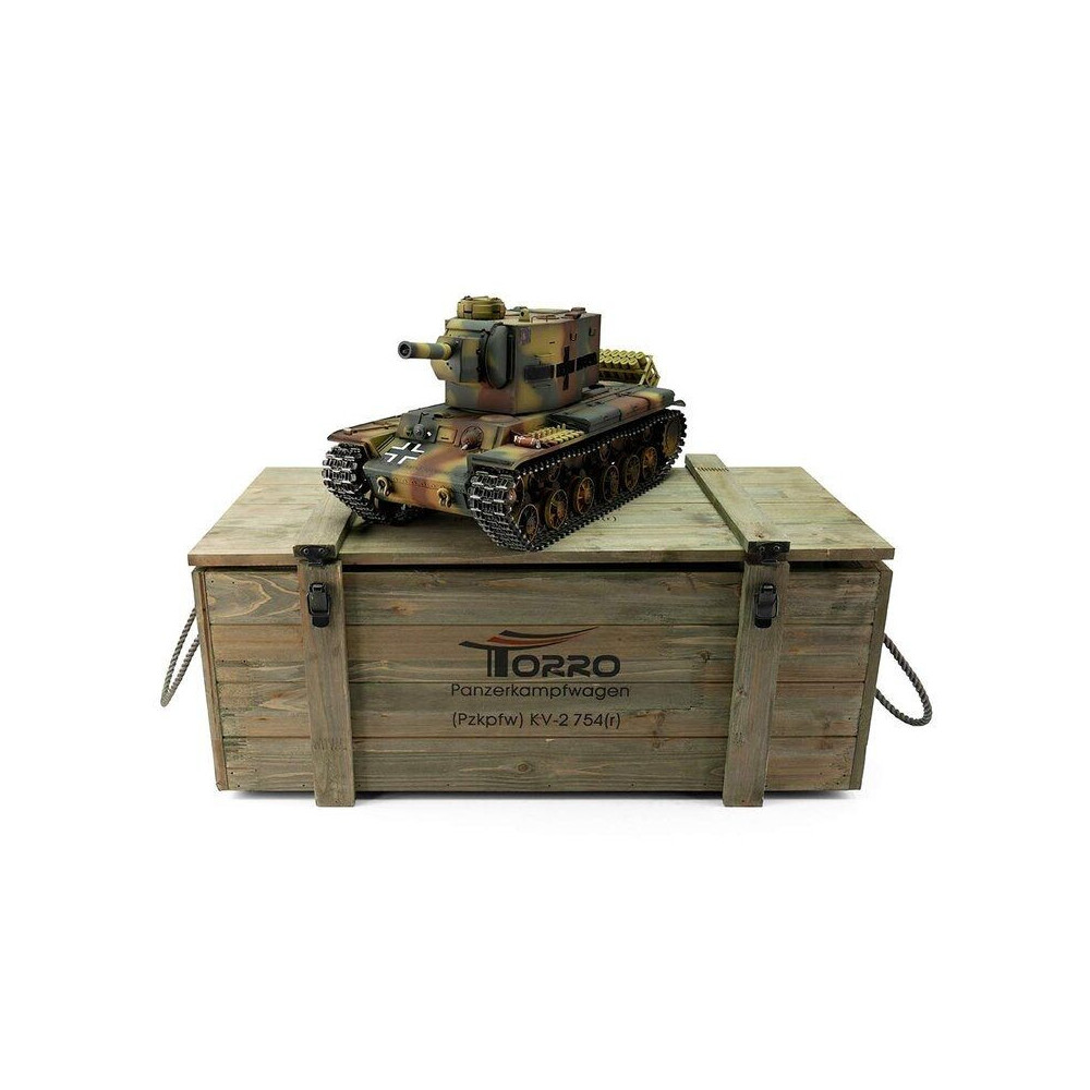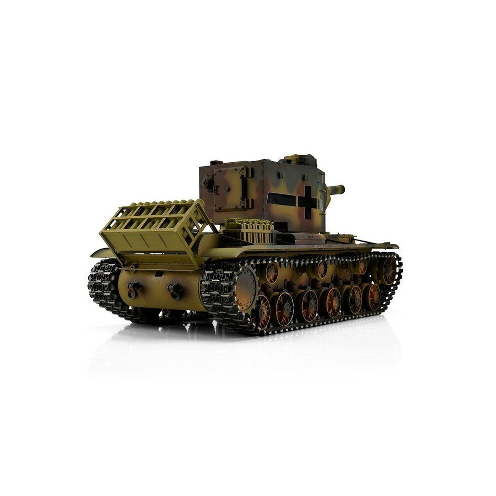 A körülbelül hat kilogrammos tömegével a KV-2 754(r ) ideális az igényes vásárlók számára. A professzionális kiadásban kiváló airbrush festékminőséggel, áramköri technológiával, a2,4 GHz és egy új hangszóró. Ez a modell kiváló vezethetőséggel, sokféle funkcióval és valósághű hangzással rendelkezik. A kiváló minőségű lánctalpak, a görgőkkel ellátott meghajtó- és vezetőkerekek, valamint az alsó burkolat és a harci torony fémből készültek. A sok apró alkatrész és a különböző matricák tökéletesen kiegészítik a mérethű másolatot.
