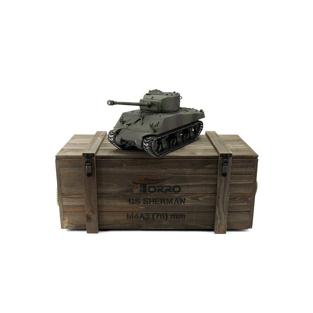 A nagy teljesítményű tankmodell 2,4 GHz-es RC vezérléssel rendelkezik. A jármű IR harcrendszerrel van felszerelve, így az azonos sorozatú járművekkel való csaták is lehetségesek. Motorok optimalizáltm nyomatékának köszönhetően az M4A3 Sherman 76mm precíz és egyenletes mozgást biztosít. A robusztus fogaskerékkel ellátott fém fogaskerekek és a továbbfejlesztett áttételezés nagyobb teljesítményt biztosít. Az arányos vezérléssel nagyon lassan közelítheted meg a tankot, és egyenletesen növelheted a sebességet. Az M4A3 Sherman 76mm előre és hátrafelé, valamint balra és jobbra kanyarodással is mozog. Helyben is lehet balra vagy jobbra fordítani. A löveget fel és le tudod emelni és leengedni, valamint a tornyot 360 fokban el tudod forgatni. Különböző motorhangok, a cső visszarúgása, a torkolattűz és a kipufogó füstje teszi teljessé a valósághű élményt.