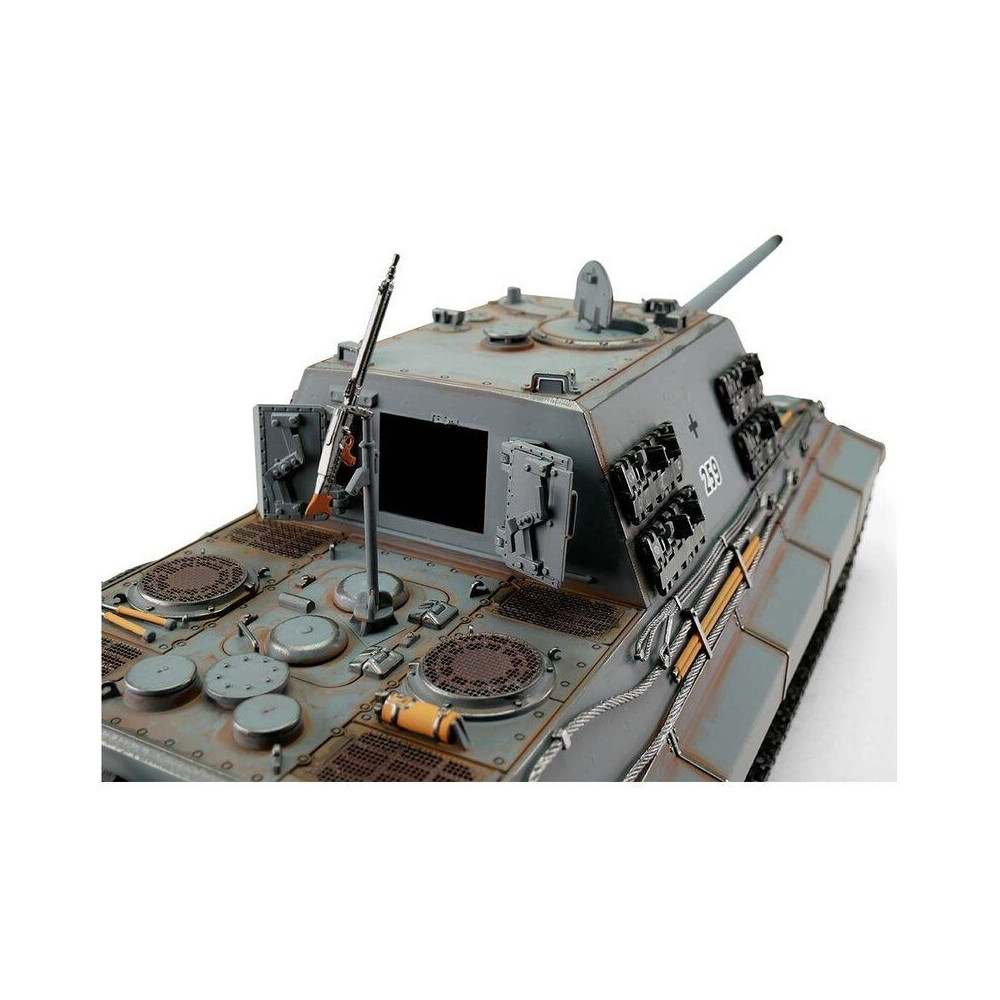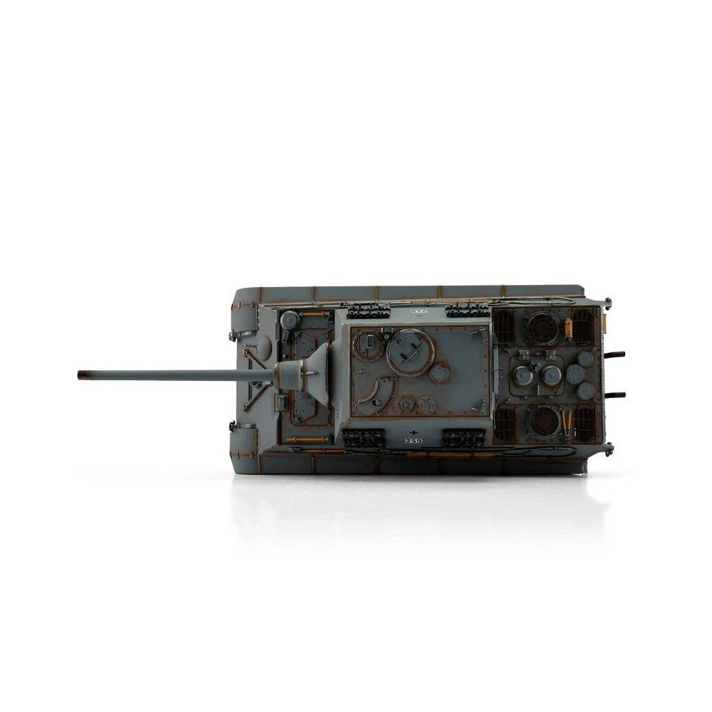A Jagdtiger körülbelül hét kilogrammos súlyával ideális az igényes vásárlók számára. A professzionális kiadásban kiváló airbrush festékminőséggel, 2,4 GHz-es áramköri technológiával és új hangszóróval rendelkezik. Ez a modell kiváló vezethetőséggel, számos funkcióval és valósághű hangzással rendelkezik. A kiváló minőségű lánctalpak, a görgőkkel ellátott meghajtó- és vezetőkerekek, valamint az alsó hajótest és a harci torony fémből készültek. A sok apró alkatrész és a különböző matricák tökéletesen kiegészítik a mérethű másolatot.