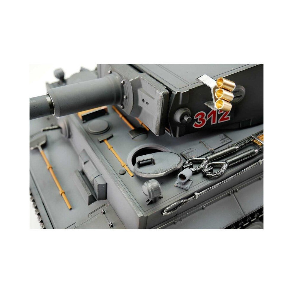 A nagy teljesítményű tankmodell 2,4 GHz-es RC vezérléssel rendelkezik. A jármű BB Airosft rendszerrel van felszerelve, így a valódi harcokhoz hasonló csaták is lehetségesek. A nyomatékoptimalizált motorok precíz és sima vezetést biztosítanak a Tiger I-nek. A robusztus fogaskerékkel ellátott fém fogaskerekek és a továbbfejlesztett áttételezés nagyobb teljesítményt biztosít. Az arányos vezérléssel nagyon lassan közelítheted meg a tankot, és egyenletesen növelheted a sebességet. A Tiger I előre és hátrafelé, valamint balra és jobbra kanyarodással is mozog. Helyben is lehet balra vagy jobbra fordítani. Az ágyút fel és le lehet emelni és le lehet engedni, és a tornyot 360 fokban el lehet forgatni.