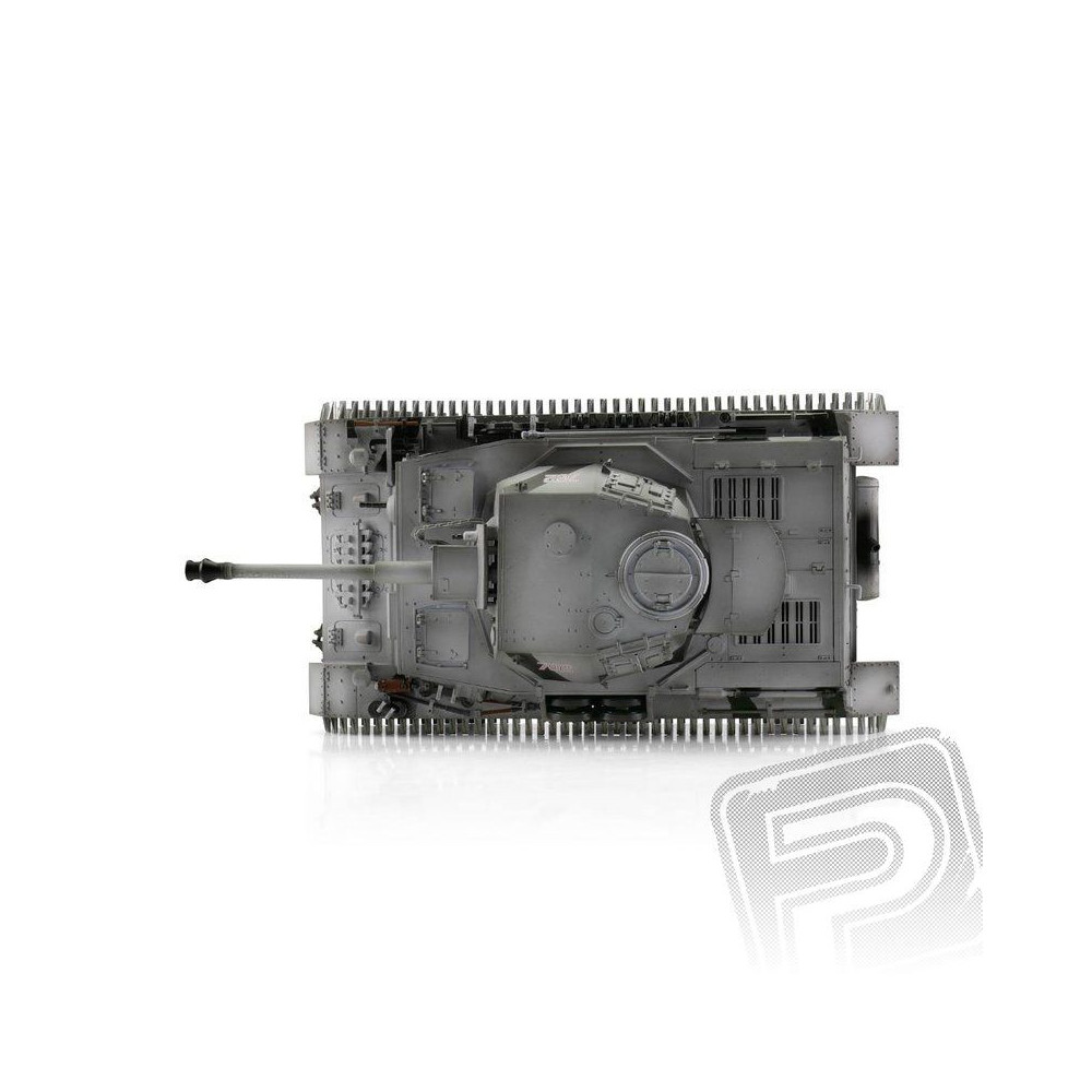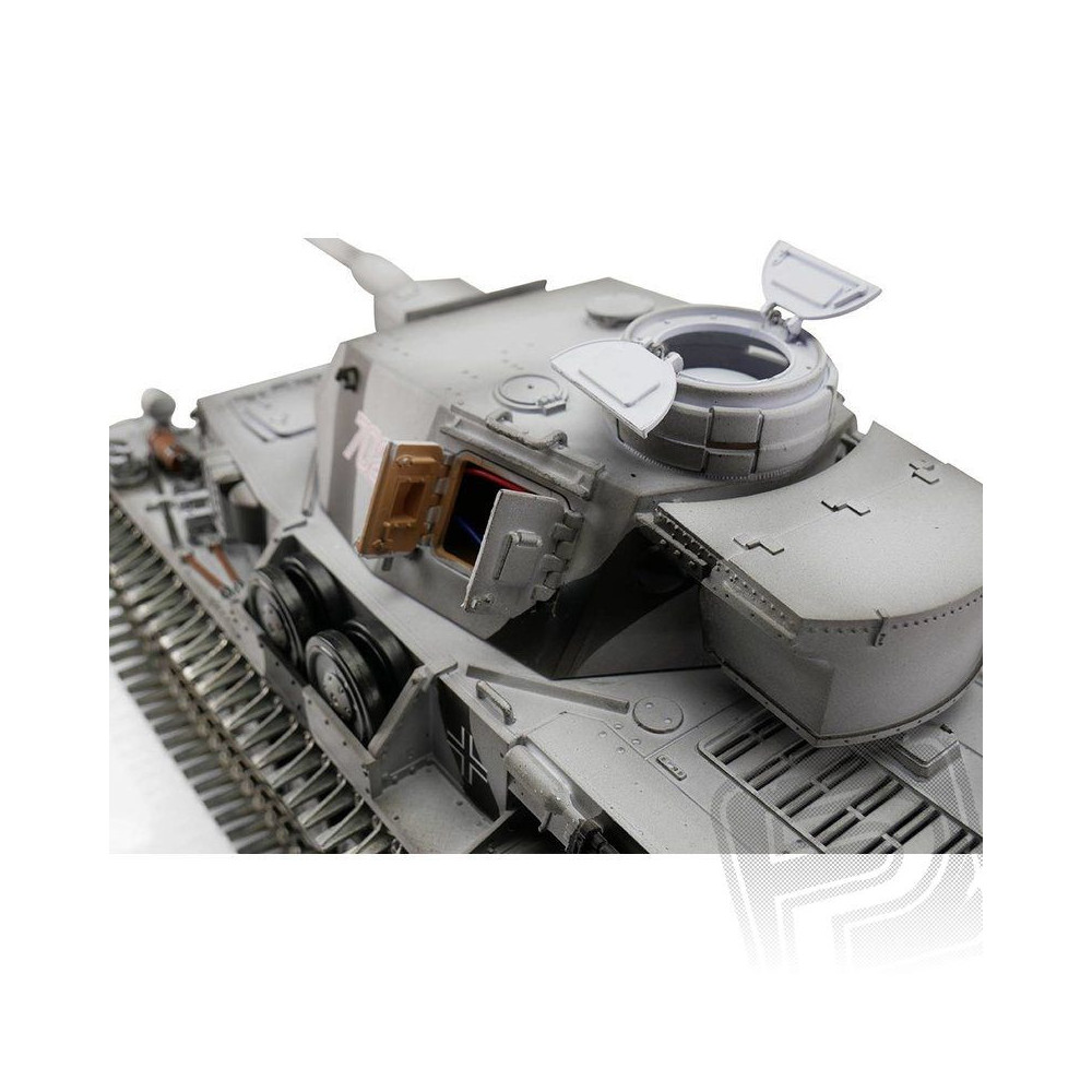 A nagy teljesítményű tankmodell 2,4 GHz-es RC vezérléssel rendelkezik. A jármű IR harcrendszerrel van felszerelve, így az azonos sorozatú járművekkel való csaták is lehetségesek. A nyomatékoptimalizált motorok a PzKpfw IV Ausf. G álcázást a precíz és sima vezetéshez. A robusztus fogaskerékkel ellátott fém fogaskerekek és a továbbfejlesztett áttételezés nagyobb teljesítményt biztosít. Az arányos vezérlésnek köszönhetően nagyon lassan közelítheted meg a harckocsit, és egyenletesen növelheted a sebességet. A PzKpfw IV Ausf. G álcázás előre és hátrafelé mozog, balra és jobbra forgással is. Helyben is lehet balra vagy jobbra fordítani. A löveget fel és le lehet emelni és leengedni, valamint a tornyot 360 fokban el lehet forgatni.