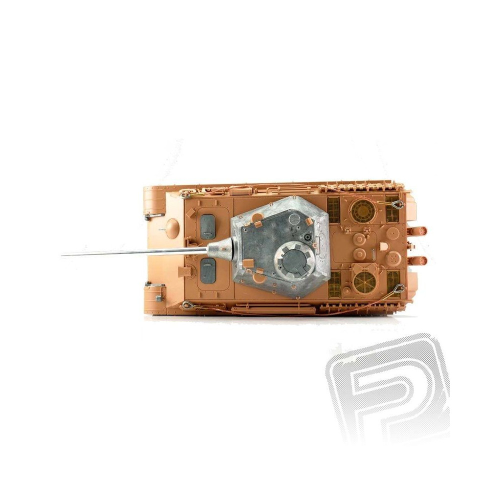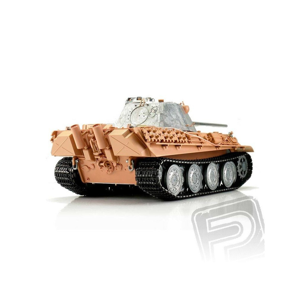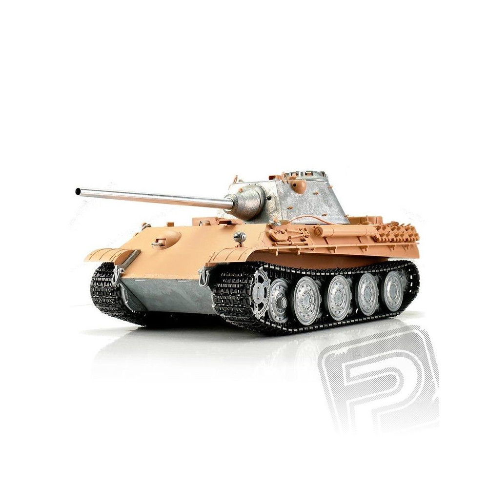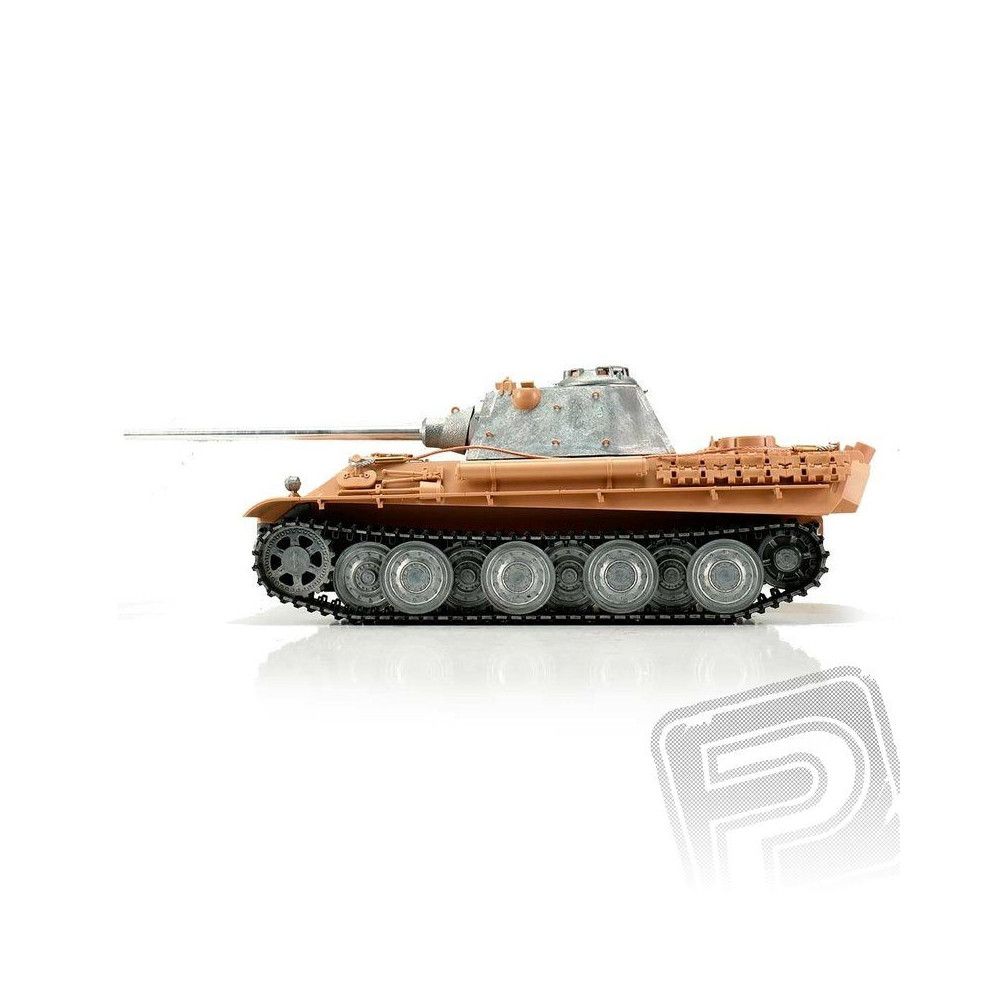 A mintegy hét kilogrammos súlyával a Panther F ideális az igényes vásárlók számára. A professzionális kiadásban kiváló airbrush festésminőséggel, 2,4 GHz-es áramköri technológiával és új hangszóróval rendelkezik. Ez a modell kiváló vezethetőséggel, széleskörű funkciókkal és valósághű hangzással rendelkezik. Kiváló minőségű pályák, görgőkkel ellátott meghajtó- és vezetőkerekek, valaminto Az alsó hajótest és a harci torony fémből készült. Sok apró alkatrész és különböző matricák tökéletesen kiegészítik a méretarányos replikát.