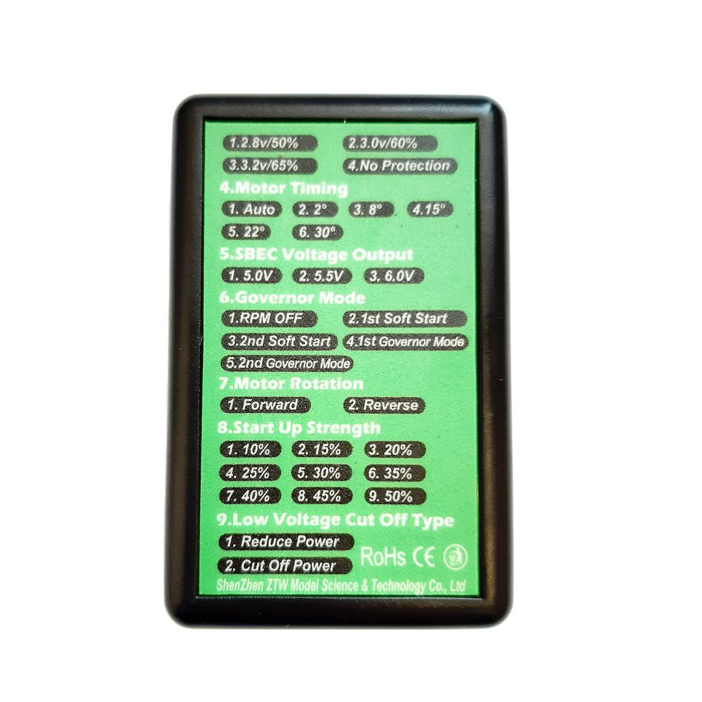 Programovacia karta na nastavenie parametrov regulátorov Volta 25 a 35A, Mantis 45A.