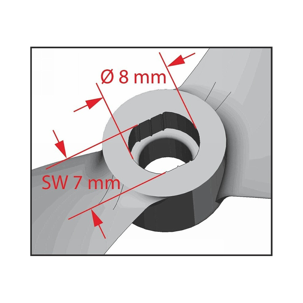 Műanyag, üvegszállal töltött légcsavar, 5,5/5 hüvelyk, 5/7/8 mm-es furat, súly 4 gramm.