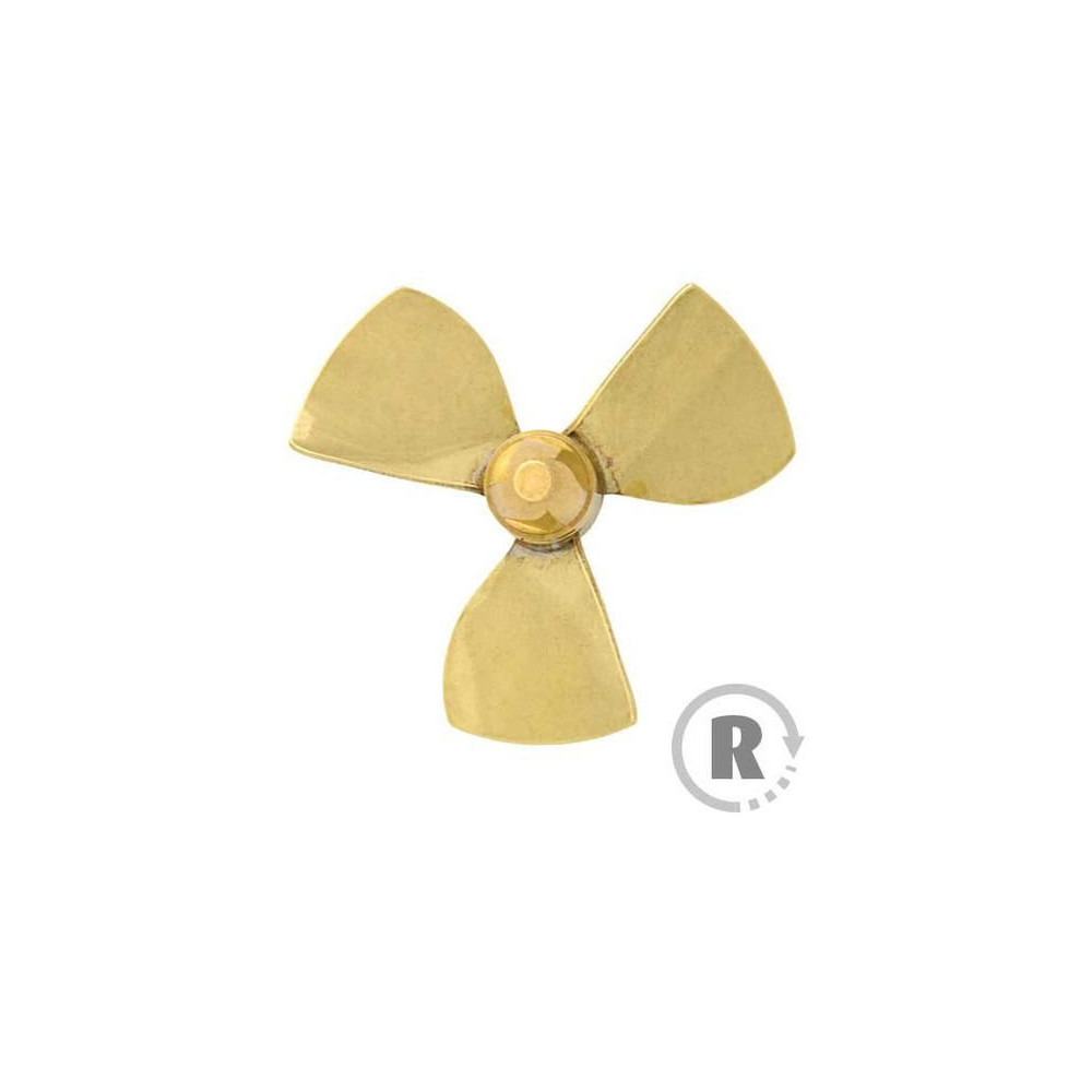 Raboesch hajócsavar 150-es osztályú 3-lapátos, átmérő 55mm, jobbos forgásirányú, tengelyrögzítés M5-ös menettel, anyaga sárgaréz, ezüsttel forrasztott.
