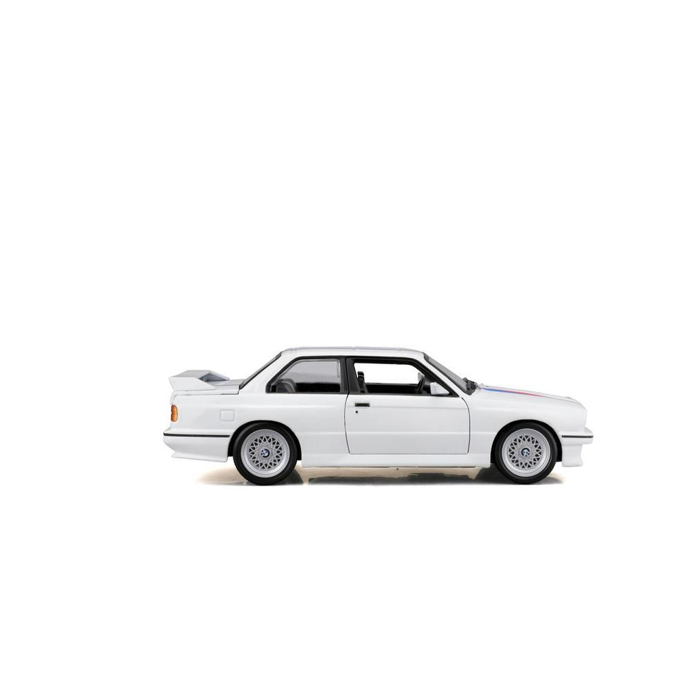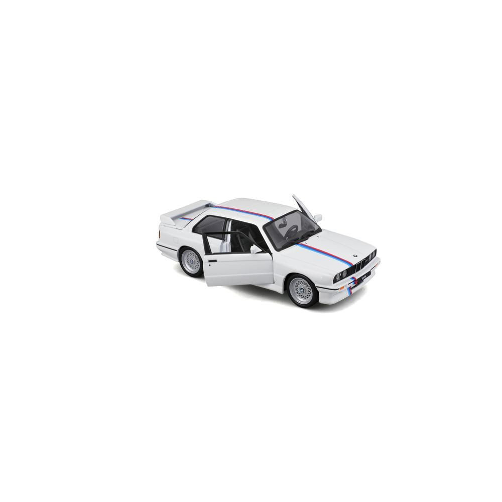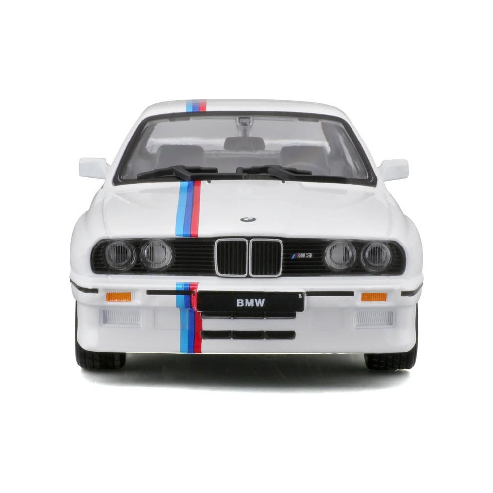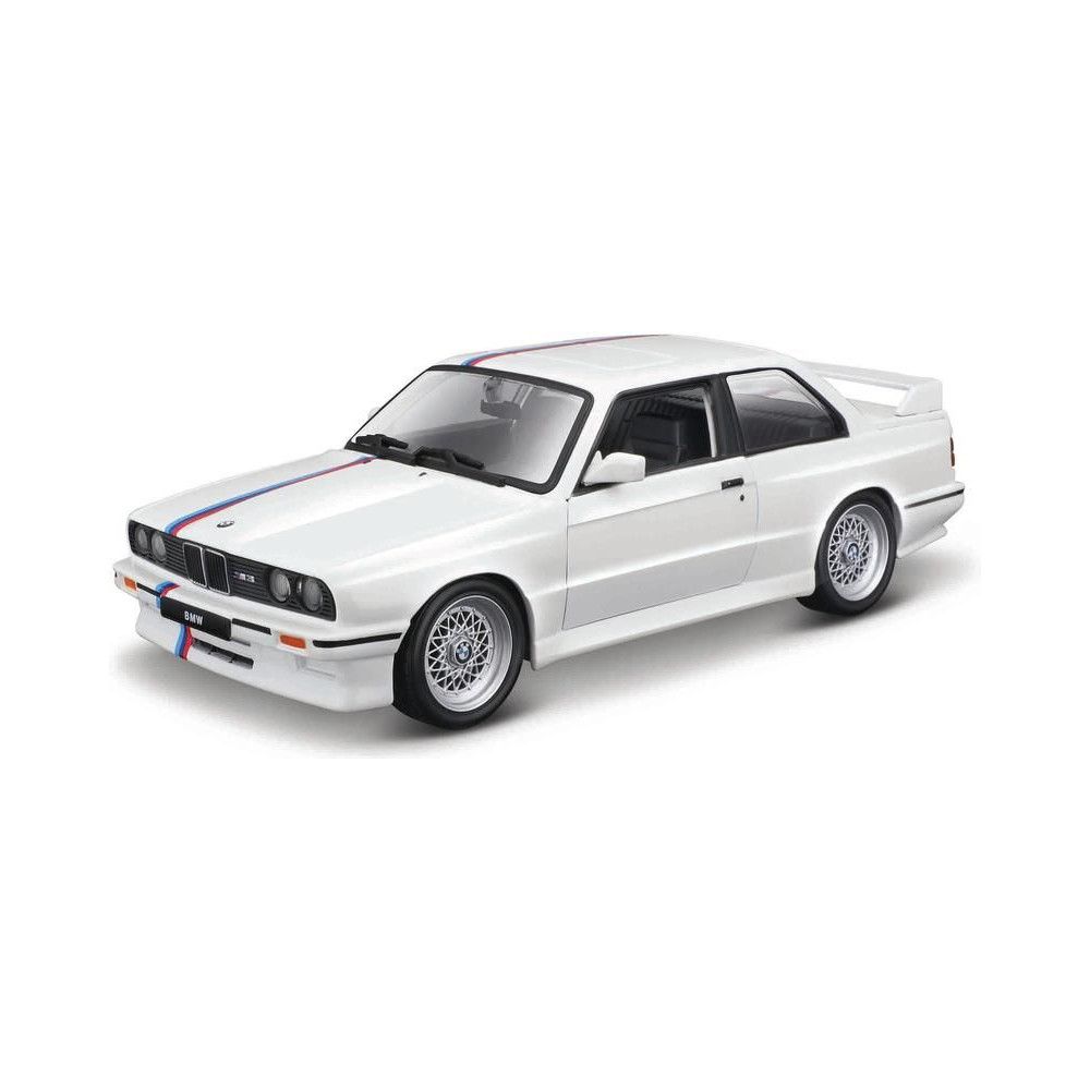1:24-es fém autómodell Bburago 18-21100 BMW 3-as széria M3 1988 nem csak gyűjtőknek. Nyitóajtós, a modell színe fehér.