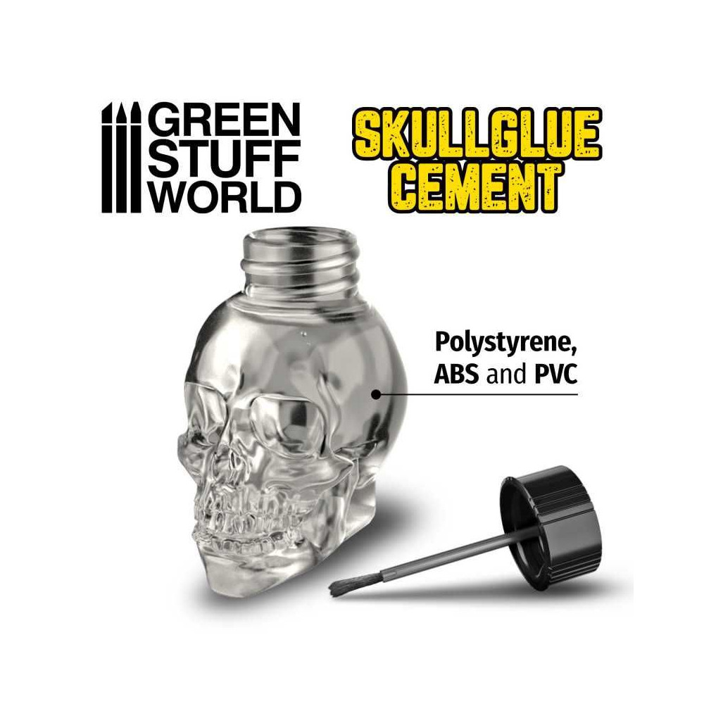 Az oldószeres cement modellező ragasztó egy olyan ragasztótípus, amelyet általában műanyag alkatrészek ragasztására használnak modellek és miniatúrák gyártása során. Ez a fajta cementragasztó úgy működik, hogy kémiailag megolvasztja a műanyagok felületét és összeragasztja őket, erős és tartós kötést hozva létre. A SkullGlue egy gyorsan kötő, extra folyékony formulájú műanyagmodell-ragasztó, amelyet modellkészítéshez használnak. Gyorsan szárad és nem hagy maradványokat.