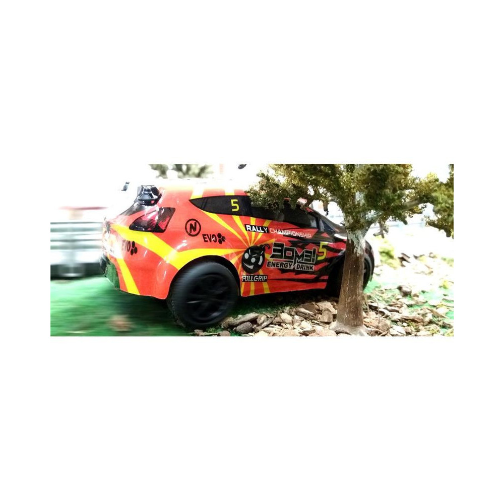 RC játék gyerekeknek A Nincoracers X Rally Bomb 1:30 méretarányban különösen alkalmas beltéri használatra. Hossza mindössze 14 centiméter, és szinte bárhol vezetheted. Ezzel a modellel gyermeked szobája azonnal az otthoni rallyversenyek pályájává válik. A karosszéria tartós műanyagból készült. Gyönyörű színű. A puha gumival ellátott kerekek minden felületen jól tapadnak. Egy erős egyenáramú motor forgatja a hátsó kerekeket, és 12 kilométer/órás sebességgel hajtja a modellt.