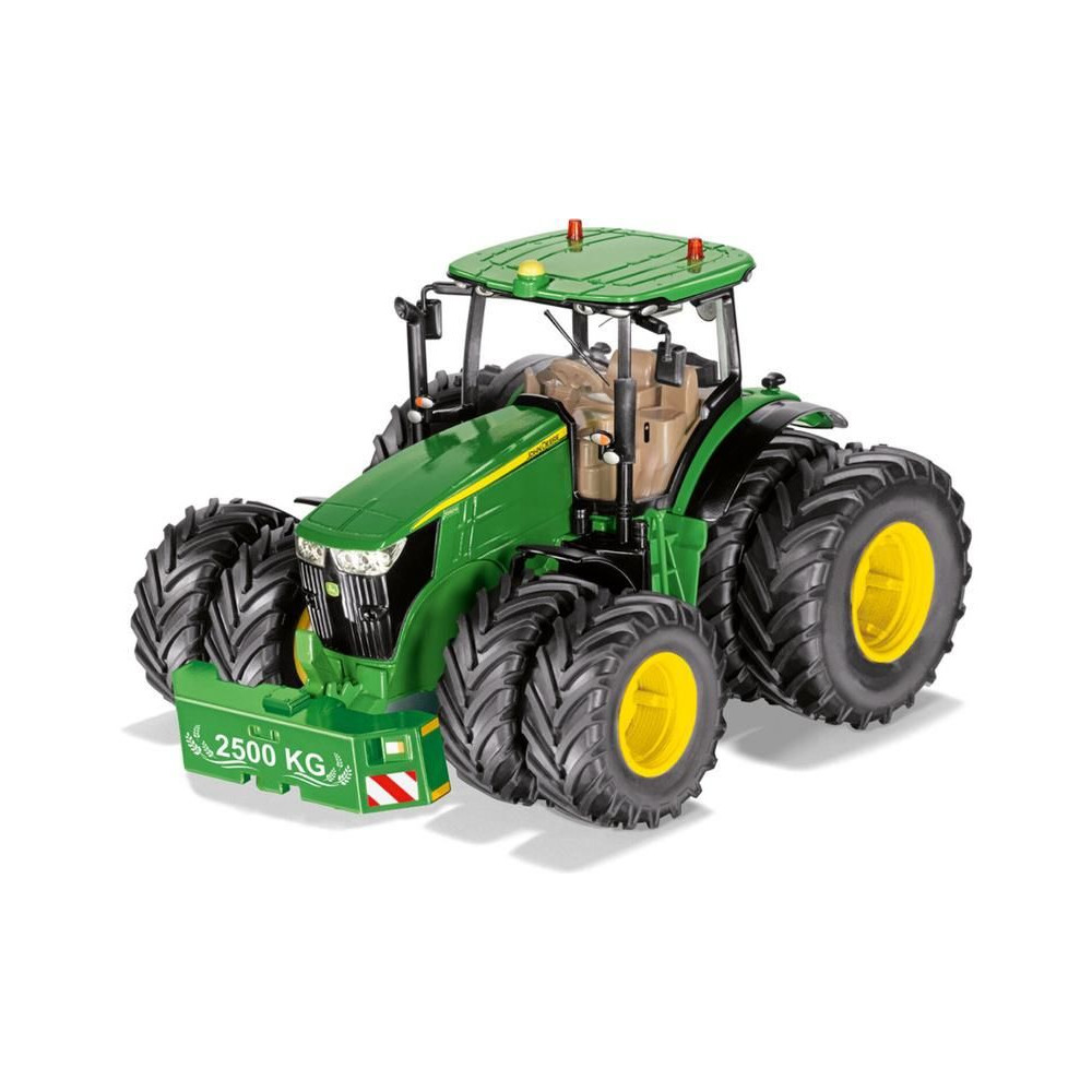 John Deere 7290R traktor fém modellje telefonos távirányítással 1:32 méretarányban. Három távirányítható funkció - vezetés, kanyarodás, vonóhorog zár. 14 LED, beleértve a működő irányjelzőket és jelzőfényeket. Kettős gumiabroncsok. Játékra és gyűjtésre alkalmas. Kiváló minőségű autentikus fém és műanyag kivitelezés.