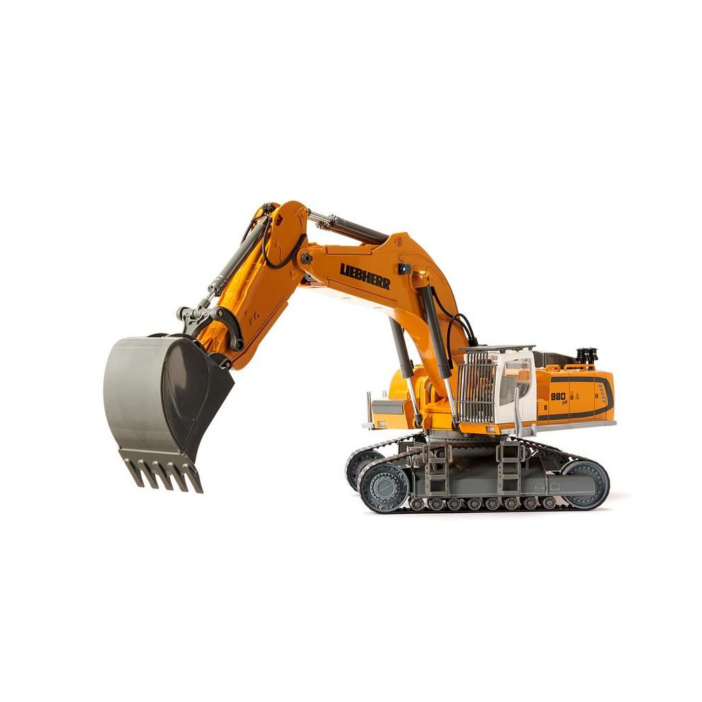 Liebherr R980 SME lánctalpas kotrógép fém modellje telefonos távirányításhoz 1:32 méretarányban. Hat távirányítható funkció - vezetés, fordulás, fülke forgása, két karcsukló és billenőkanál. 8 LED, hangok az alkalmazásban. Játékra és gyűjtésre alkalmas. Kiváló minőségű autentikus fém és műanyag kivitelezés.