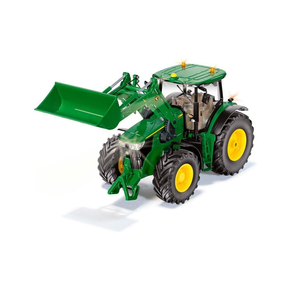 John Deere traktor fém modellje telefonos távirányítással 1:32 méretarányban. Öt távirányítású funkció - vezetés, fordulás, első rakodó emelése, vödörkiürítés, vonóhorog zár. 14 LED, beleértve a működő irányjelzőket és jelzőfényeket. Játékra és gyűjtésre egyaránt alkalmas. Kiváló minőségű autentikus kivitelezés.