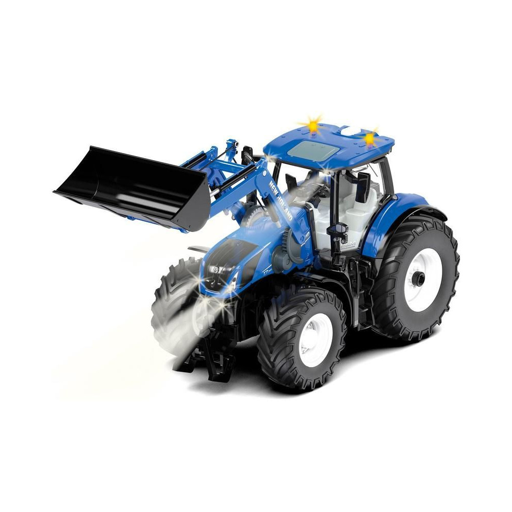 A New Holland T7.315 traktormodell nemcsak a műanyag alkatrészekkel ellátott, robusztus, autentikus fémszerkezetével, hanem a távirányítású funkcióival is abszolút elnyeri tetszését, amelyeket a telefonján található Siku Control alkalmazással vezérelhet. Az öt mechanikus funkció mellett távolról is bekapcsolhatja a lámpákat, aktiválhatja az irányjelzőket és elindíthatja a jelzőfényeket. A modellhez tartozik még egy elülső tartó és behajtható tükrök is. A Siku 1:32-es sorozatának egyéb kiegészítőivel is felszerelhető. A modell ceruzaelemekkel működik.