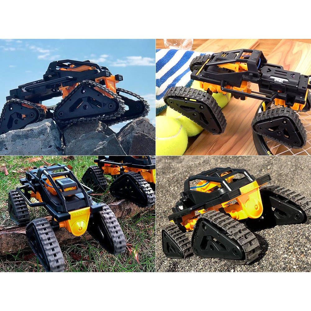 Ez az összeszerelőkészlet egy 4 lánctalpas lánctalpas járműmodellt hoz létre, egy olyan modellt, amelynek 4 kereke helyett 3 oldalas lánctalpai vannak, és könnyen leküzdhető az egyenetlen felületeket.