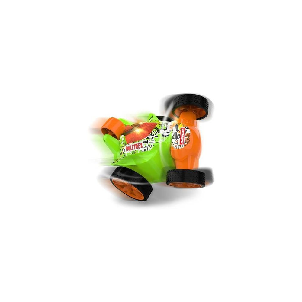 NINCORACERS Rolltrex zöld távirányítós kisautó LED világítással az utastérben , forgó első kerekekkel és gumiabroncsokkal. Az autó lehetővé teszi a hátsó kerekeken való hajtást, és egy speciális funkcióval is rendelkezik, amely elforgatja az első kerekeket. Az autót öt AA típusú elem táplálja (3 db a játékautóhoz, 2 db az adóhoz) (az elemek nem részei a csomagnak). Az adó megbízhatóan és interferencia vagy kimaradás nélkül működik a 2,4 GHz-es sávban.