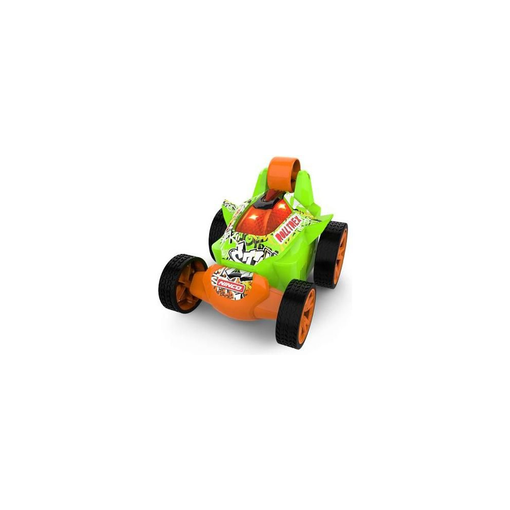 NINCORACERS Rolltrex zöld távirányítós kisautó LED világítással , forgó első kerekekkel és gumiabroncsokkal. Az autó lehetővé teszi a hátsó kerekeken való hajtást, és egy speciális funkcióval is rendelkezik, amely elforgatja az első kerekeket. Az autó ceruzaelemekkel működik. 2,4 GHz-es adó.