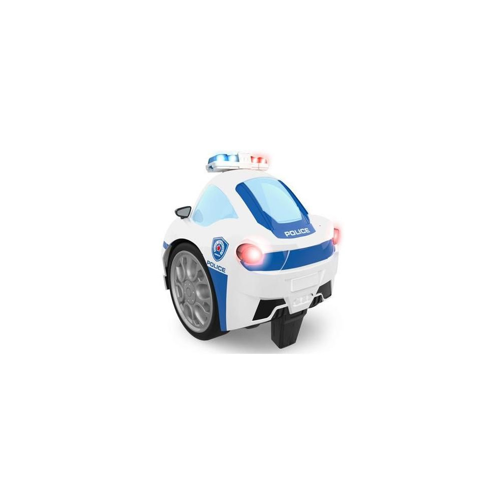 Rendőrségi távirányítós autó két kerékkel, amely lehetővé teszi a normál vezetést és a vad 360°-os fordulatokat. A gyermekmotívumos autó szemet gyönyörködtető LED világítással (első és hátsó lámpák, villogó) rendelkezik, és hangokat ad ki. Az autó ceruzaelemekkel működik. 27 MHz-es adó.