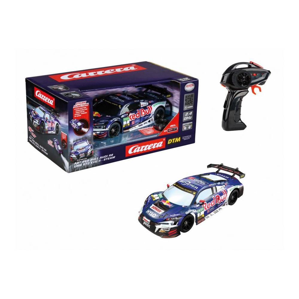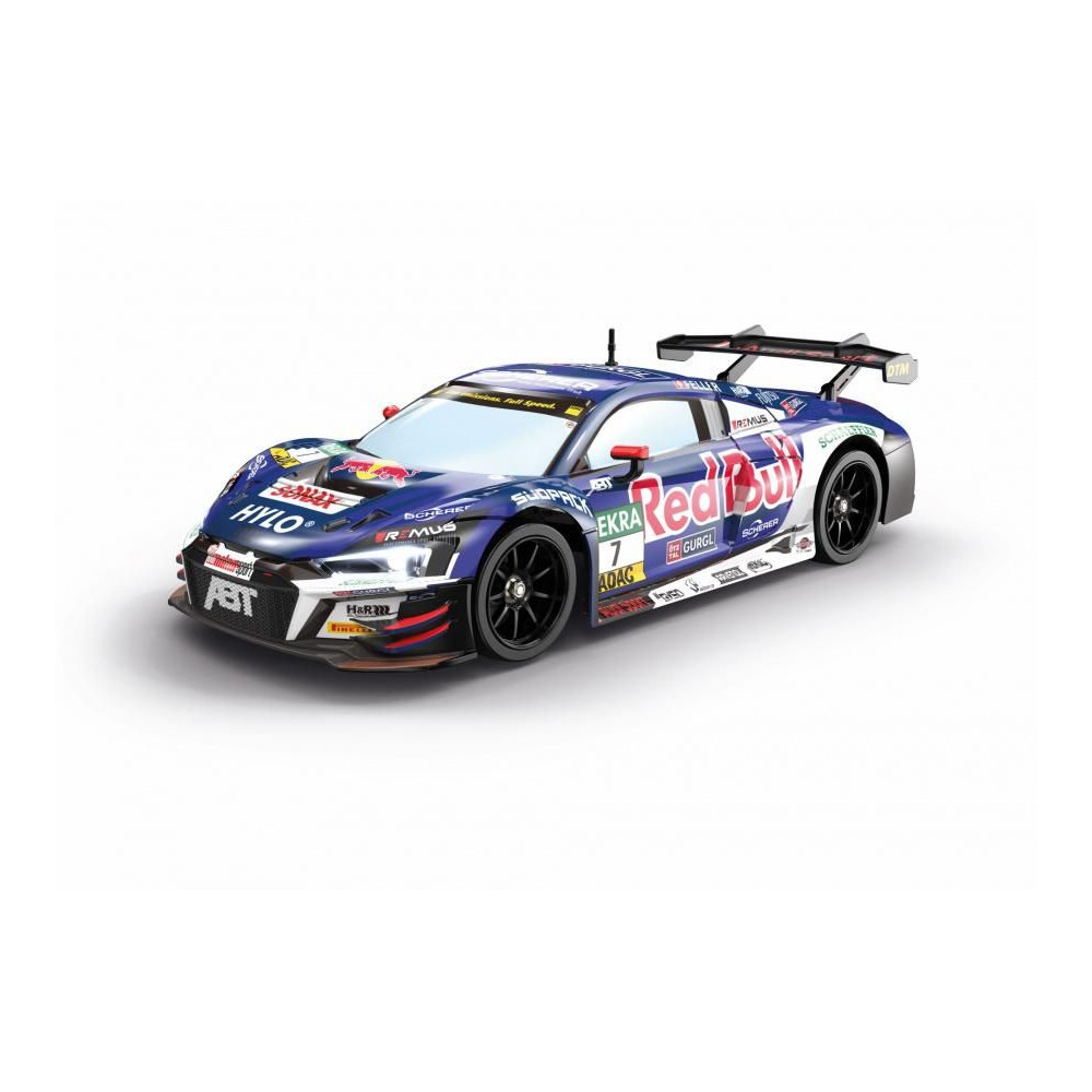 Audi R8 LMS távirányítós autó Red Bull színekben, 1/16 méretarányban, 18 km/h sebességgel halad, mérete 28 cm, összkerék-felfüggesztés, 2,4 GHz-es frekvencia, vezetési idő akár 30 perc. STEAM funkcióval!