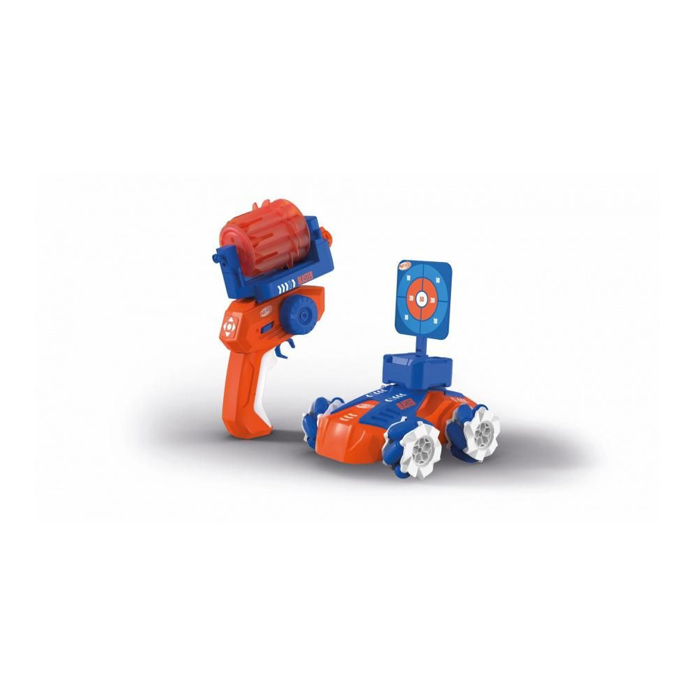 Carrera RC találkozik a Nerffel! Vezess és lőj a híres puha Nerf és Carrera RC lövedékekkel a Carrera RC Nerf Robbantóautóban! A 6 éves és annál idősebb vezetők a 10 eredeti Nerf lövedékkel ellátott blasterpatront rögzíthetik - akár a vezetőjükre, akár a 17,5 cm hosszú autóra -, és számos új kihívással nézhetnek szembe. Egy célpont is tartozik hozzá, ezért célozz óvatosan, és találd el a célpontot az autóból. A kihívás még nehezebb, amikor az autóra szerelt célpont körbe-körbe száguld a szobában. A Nerf engedéllyel rendelkező autó akár 7 km/h sebességre is gyorsul, és speciális kerekeken minden irányban halad, miközben áthajt a játszószobákon és a hálószobákon. Kód: 240020 Méretarány 1/24 Sebesség: 7 km/h Vezetési idő: 20 perc Jármű mérete: 17 cm Frekvencia: 2,4 GHz Akkumulátor: 2*3,2 V 320 mAh Adóelemek: 2x AAA (410550) A csomag tartalma: 1x autó 1x adóelem, célpont, lövedékek 6 éves kortól