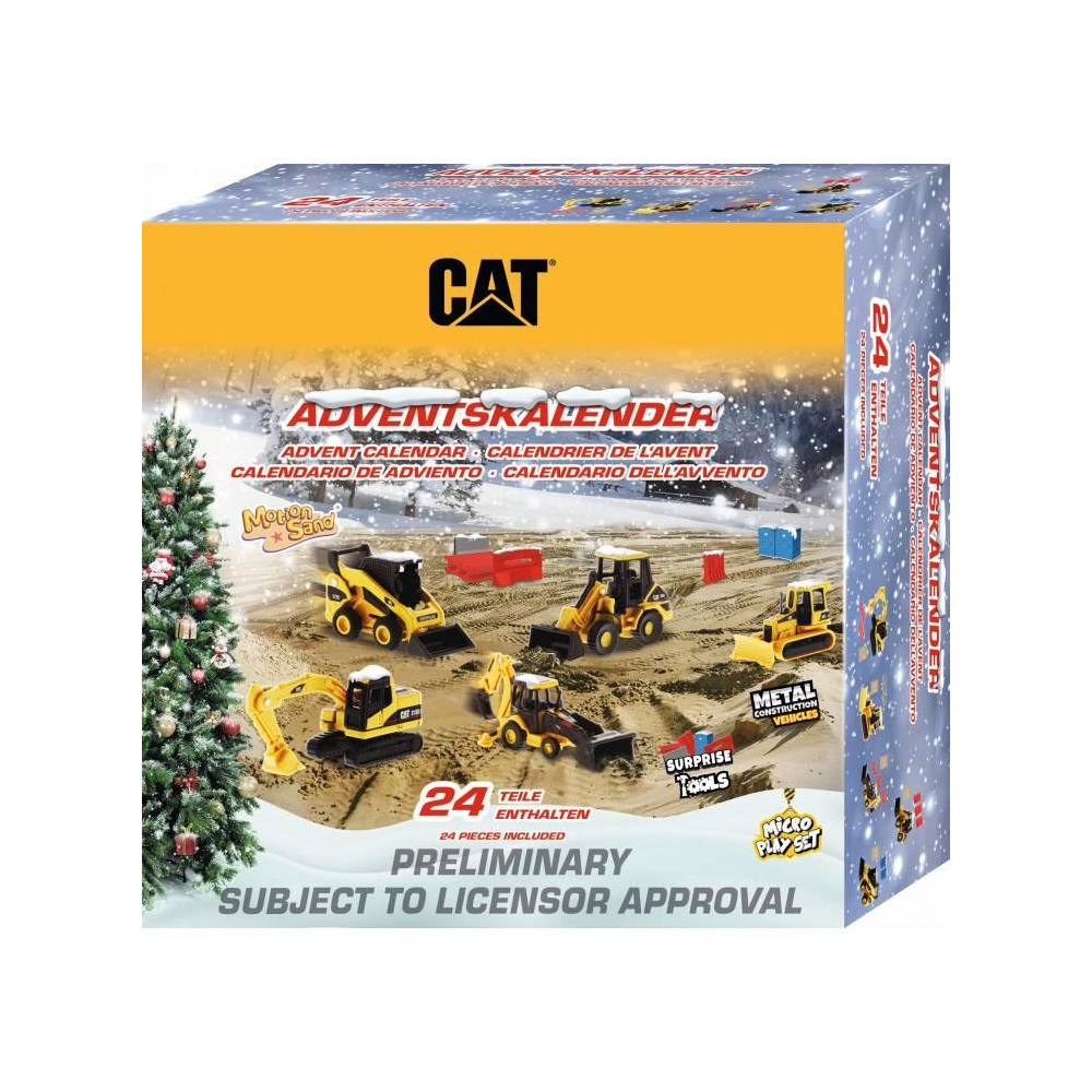 CAT Micro adventi naptár 5 autóval, táblákkal, kiegészítőkkel és matricákkal a 24 nap mindegyikéhez. 6 cm-es öntött autó.