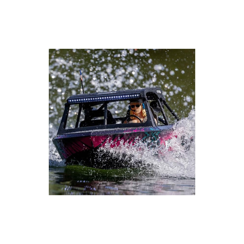 Válasszon két lenyűgöző színválaszték közül a Jetstream hajójához. Az egyik Blake Wilkey híres halálhajóját reprodukálja. A másik a lenyűgöző MoJo H2O-tematikájú grafikát ábrázolja. A modell teljes pilótafülkét, kormánykereket, replika hangszórókat, nagy szilárdságú bukókeretet és LED-világítással ellátott tetőcsomagtartót is tartalmaz.