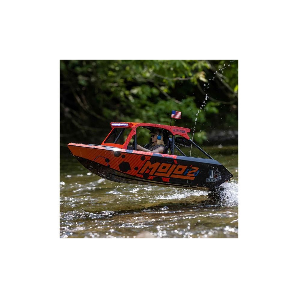A modell két hivatalos licencben kapható - Blake Wilkey's Death Boat vagy MoJo H2O festésben. Lenyűgözőek lesznek a valósághű részletek is, mint például a biztonsági ketrec, a teljes pilótafülke figurával, a kormánykerék, a replika hangszórók és még sok más. A látványos első és hátsó világítás könnyen ki- és bekapcsolható. A pilóta figurája (amelyet szintén Blake Wilkey ihletett a Mini Boat Mafia sorozatból) laza vagy vezető pozícióba helyezhető. A megbízható vezérléshez Spektrum SLT3 RC készlet és Spektrum elektronika tartozik a csomaghoz. Még több frissítési lehetőség van, amelyek még nagyobb tartósságot és telemetriaképességet biztosítanak.