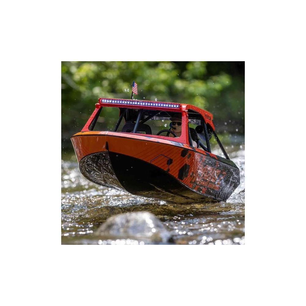A roboat Jetstream 24" Jet Boat gyors és rendkívül manőverező RC modellje vízsugárhajtással. Az őrült mutatványok lehetővé teszik a tolóerő megfordítását és a hajó megerősített alját. Licencelt megjelenés Shreddy és MoJo festése. Részletes kabin elülső és hátsó LED világítással. SLT3 RC készlet.