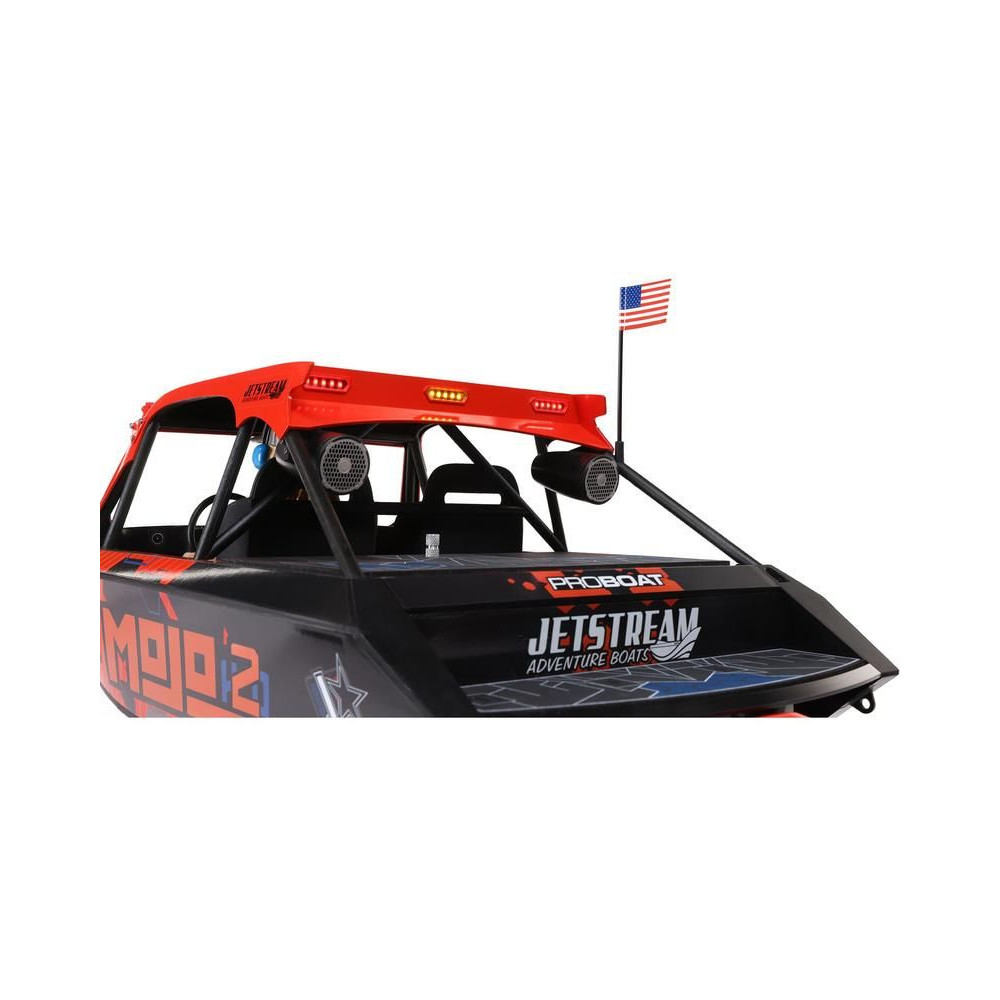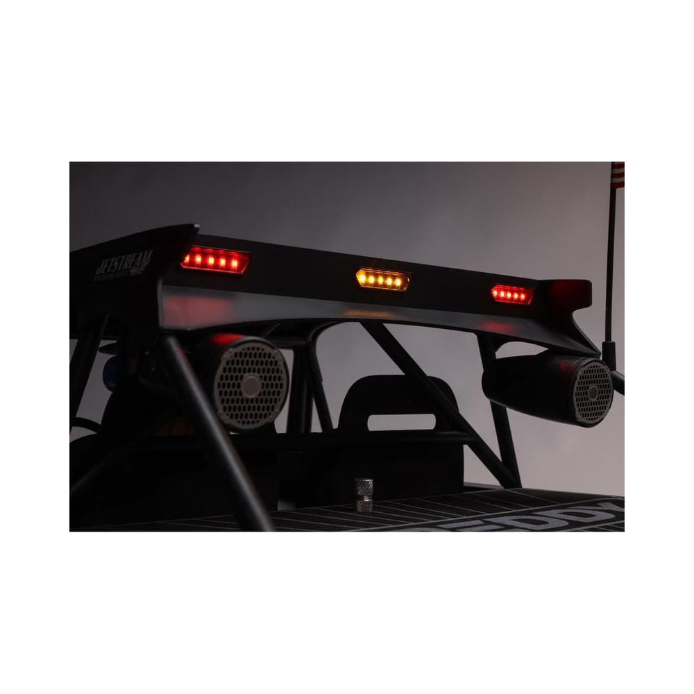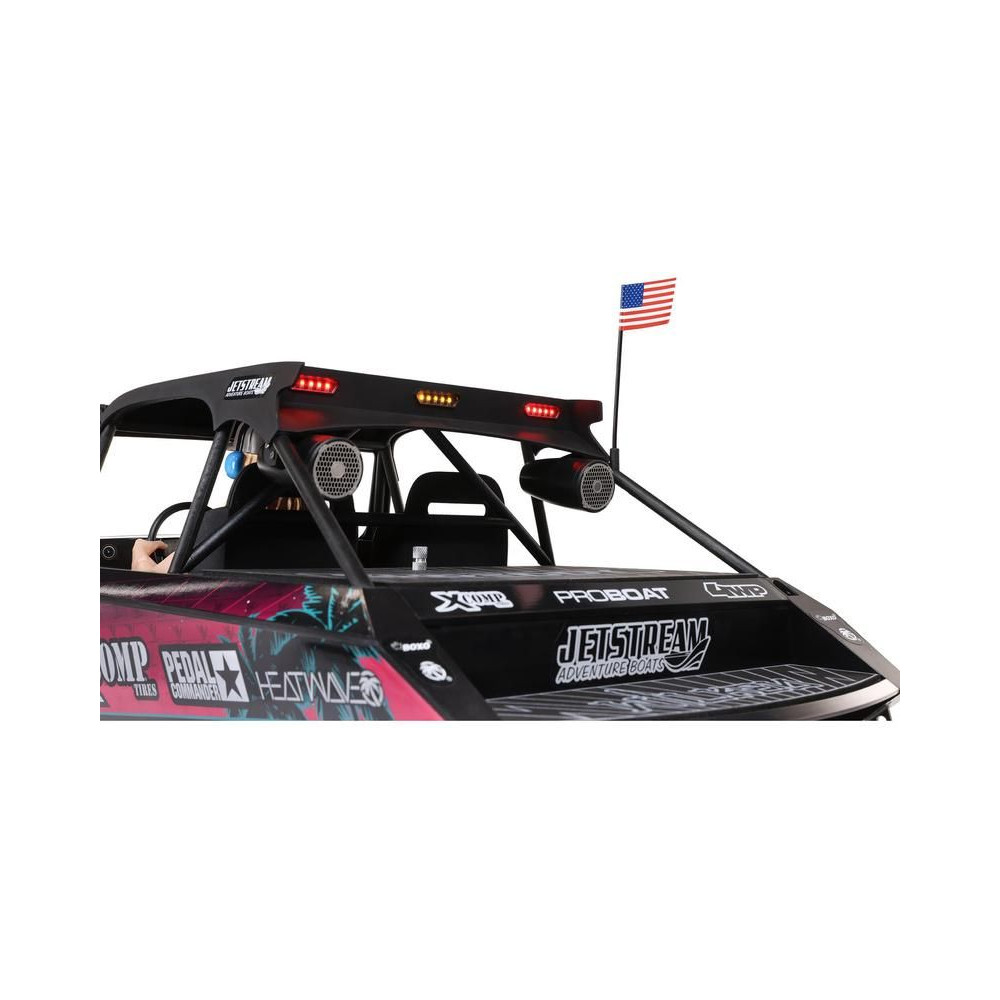 Válasszon két lenyűgöző színválaszték közül a Jetstream hajójához. Az egyik Blake Wilkey híres halálhajóját reprodukálja. A másik a lenyűgöző MoJo H2O-tematikájú grafikát ábrázolja. A modell teljes pilótafülkét, kormánykereket, replika hangszórókat, nagy szilárdságú bukókeretet és LED-világítással ellátott tetőcsomagtartót is tartalmaz.