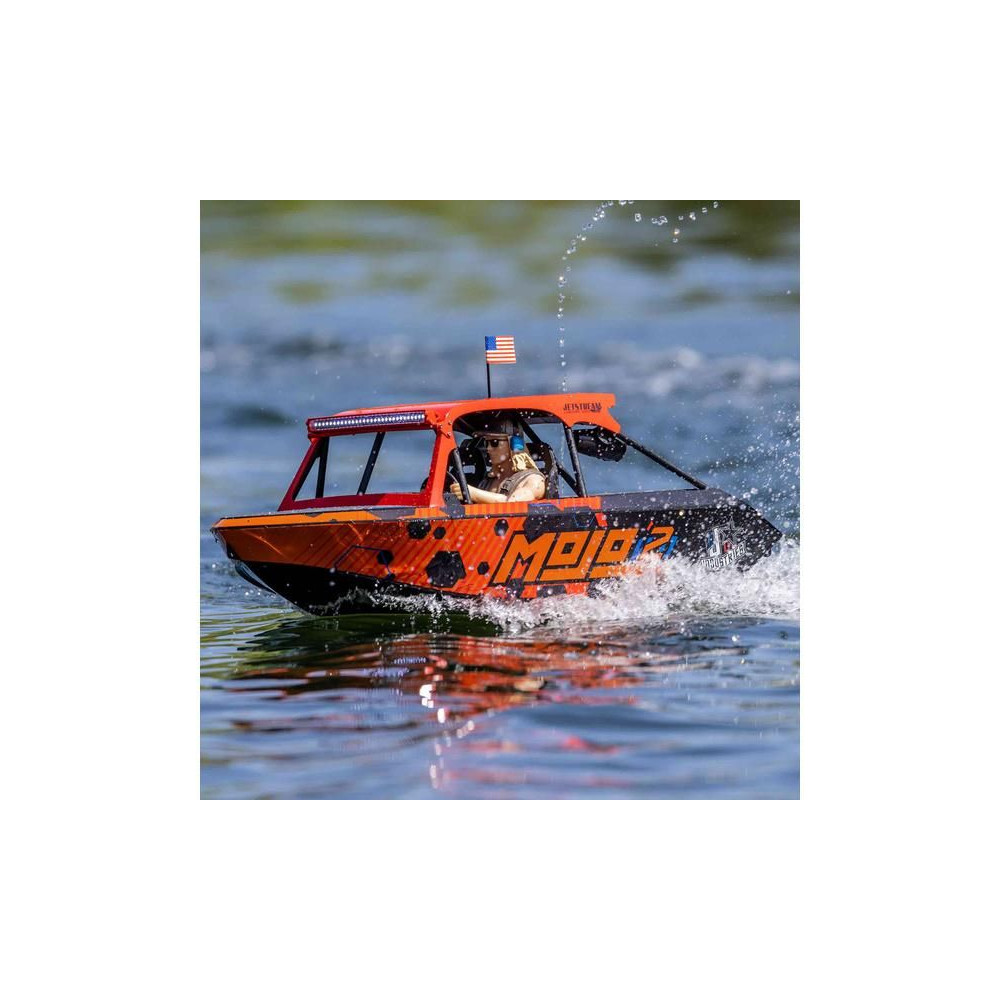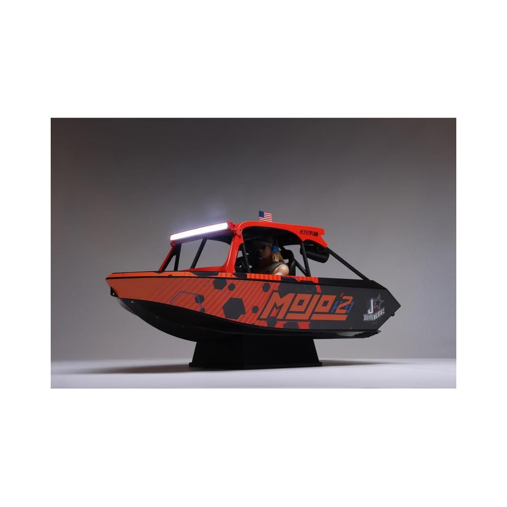 A modell két hivatalos licencben kapható - Blake Wilkey's Death Boat vagy MoJo H2O festésben. Lenyűgözőek lesznek a valósághű részletek is, mint például a biztonsági ketrec, a teljes pilótafülke figurával, a kormánykerék, a replika hangszórók és még sok más. A látványos első és hátsó világítás könnyen ki- és bekapcsolható. A pilóta figurája (amelyet szintén Blake Wilkey ihletett a Mini Boat Mafia sorozatból) laza vagy vezető pozícióba helyezhető. A megbízható vezérléshez Spektrum SLT3 RC készlet és Spektrum elektronika tartozik a csomaghoz. Még több frissítési lehetőség van, amelyek még nagyobb tartósságot és telemetriaképességet biztosítanak.