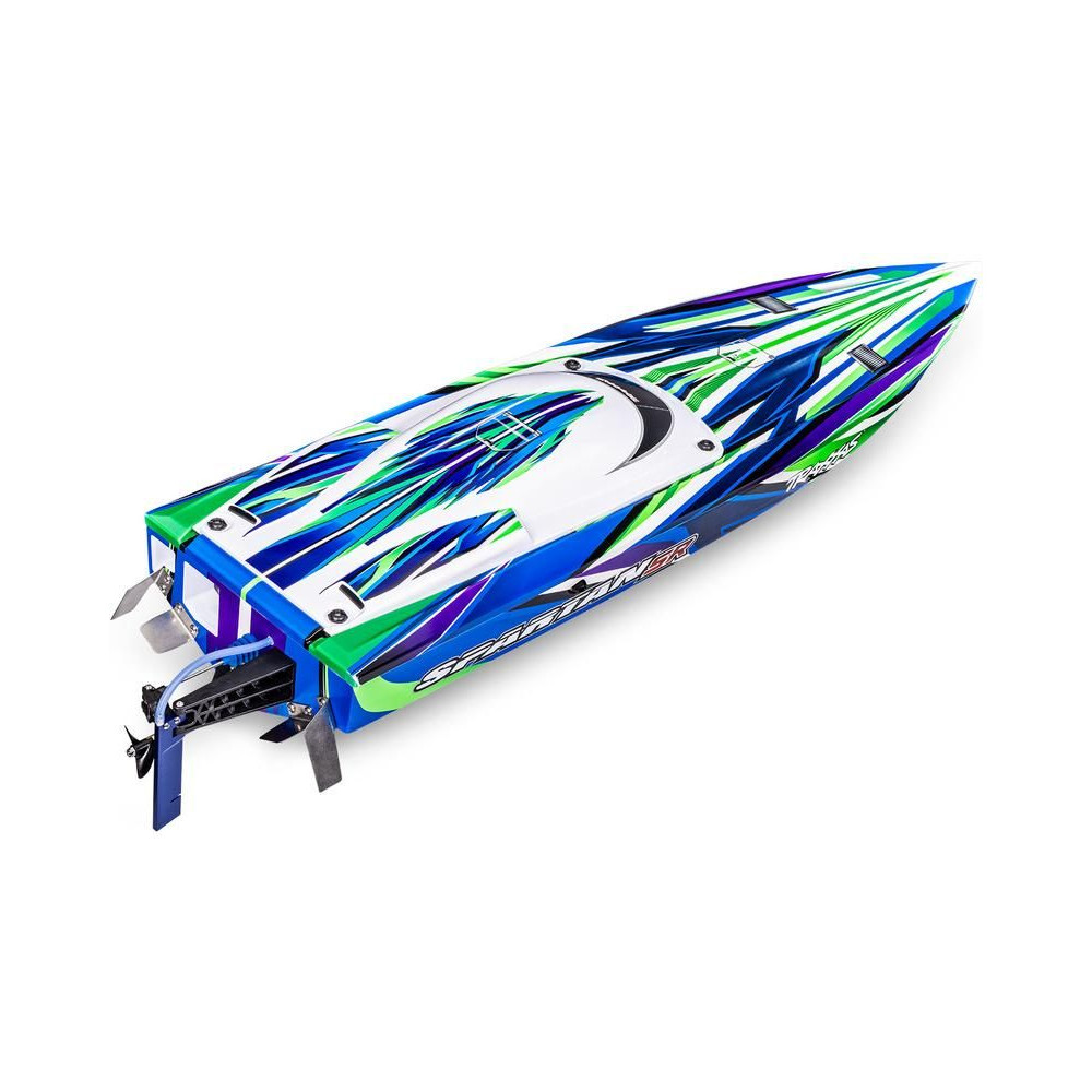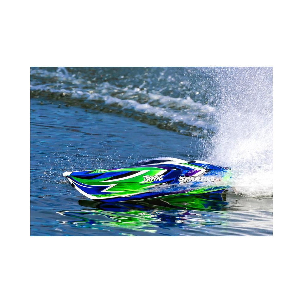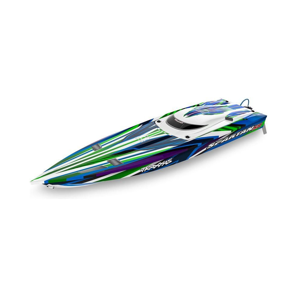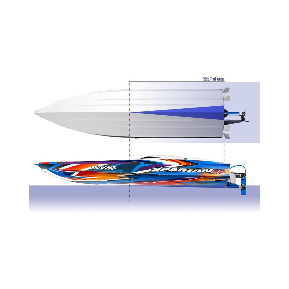 Rendkívül erős és gyors RC modell Traxxas Spartan SR 36" AC motorral és vízhűtéssel. Sebessége akár 80 km/h. Exkluzív auto-turn funkció felborulás esetén. Mély-V hajótest a precíz és gyors kormányzáshoz. Csatolásmentes borítás. TSM elektronikus stabilizátor.