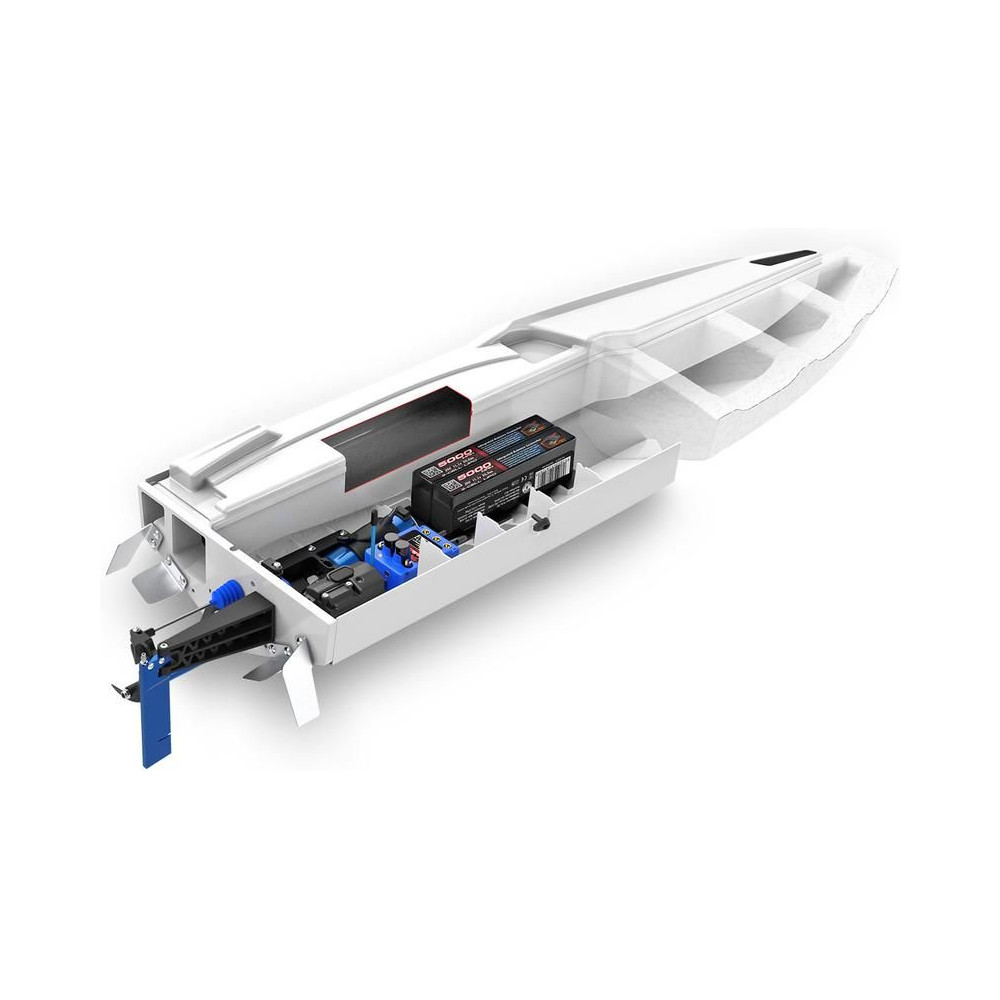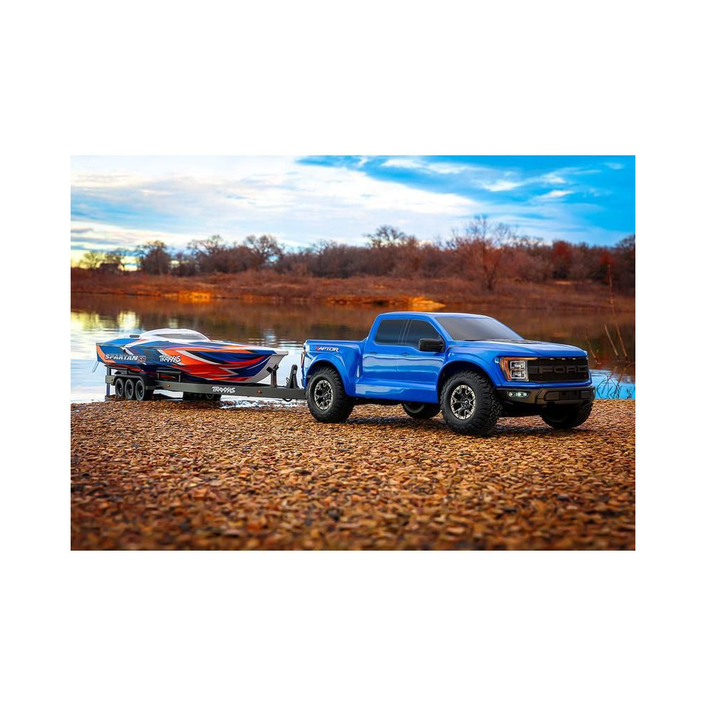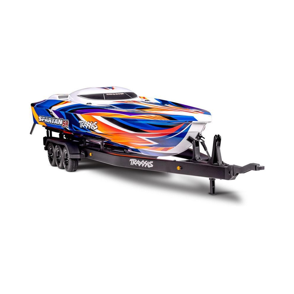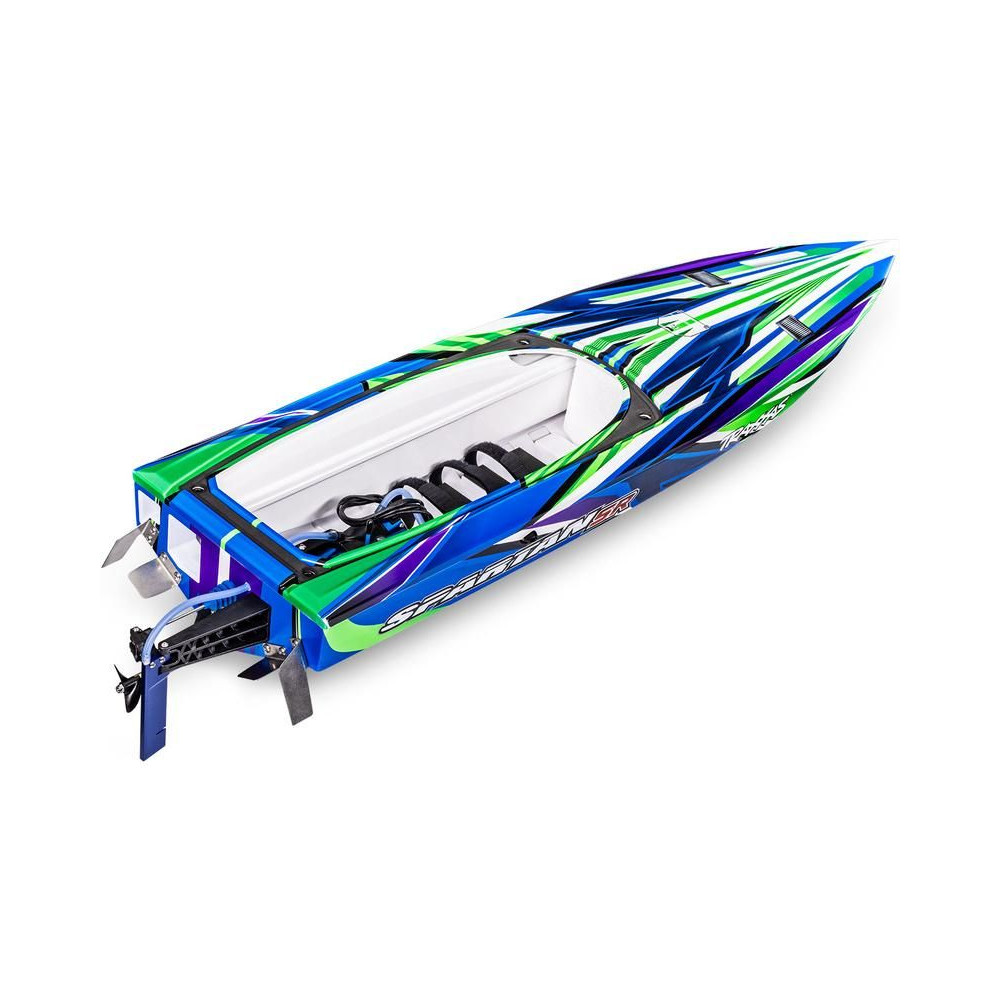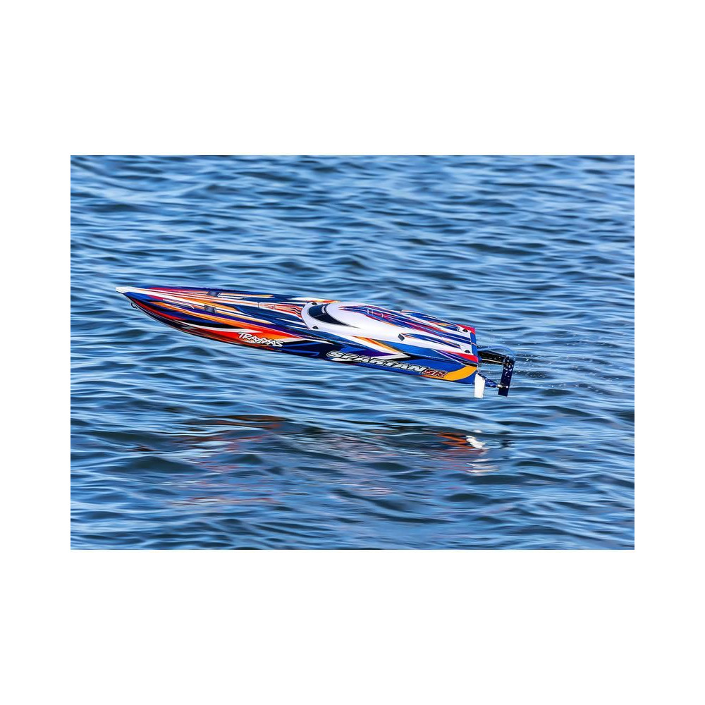 Rendkívül erős és gyors RC modell Traxxas Spartan SR 36" AC motorral és vízhűtéssel. Sebessége akár 80 km/h. Exkluzív auto-turn funkció felborulás esetén. Mély-V hajótest a precíz és gyors kormányzáshoz. Csatolásmentes borítás. TSM elektronikus stabilizátor.