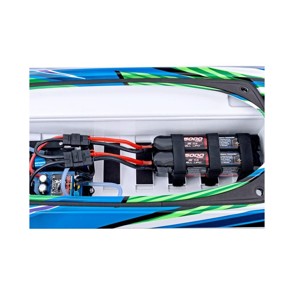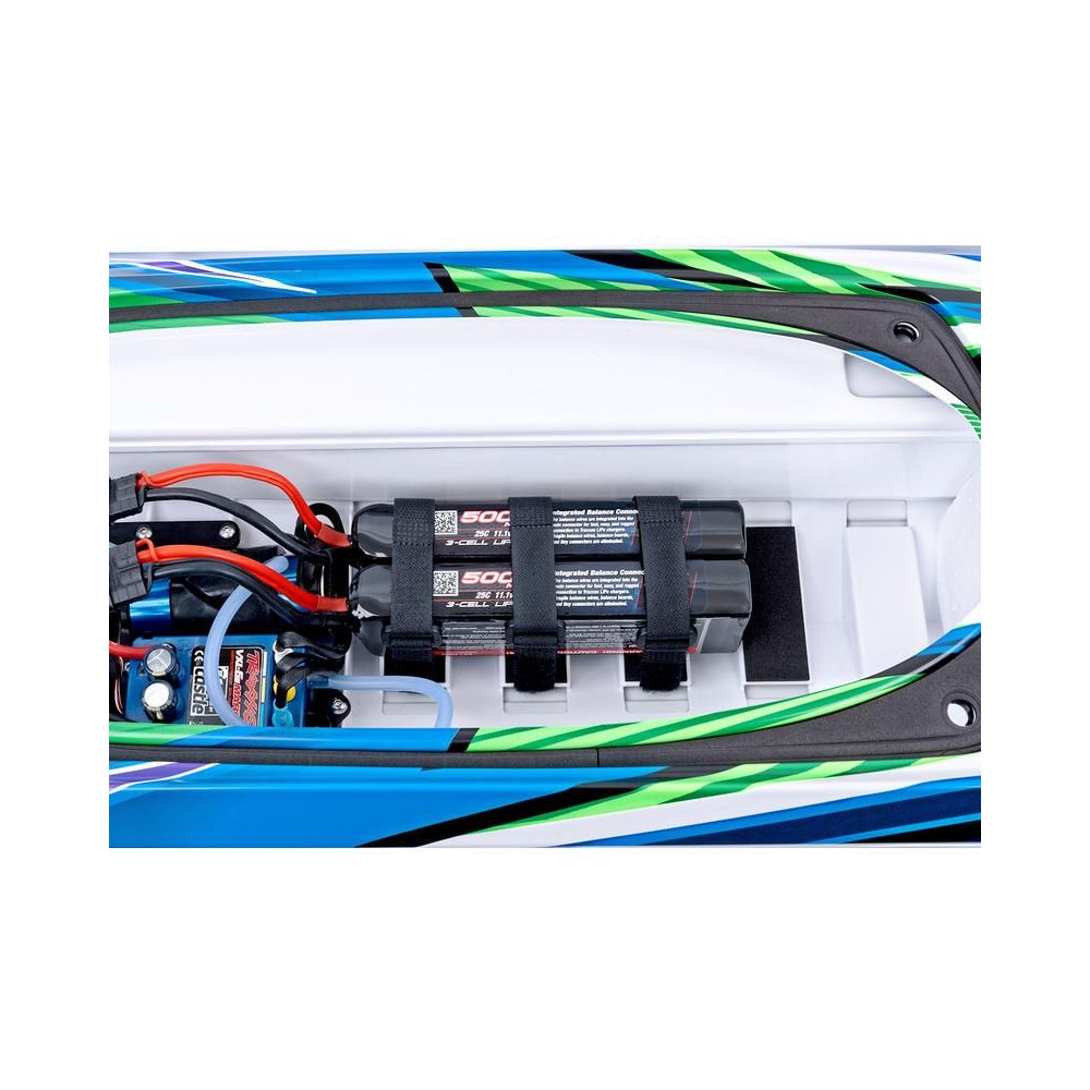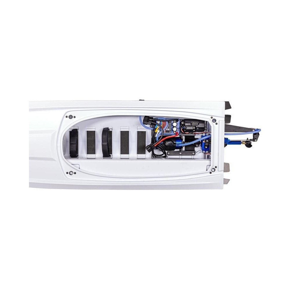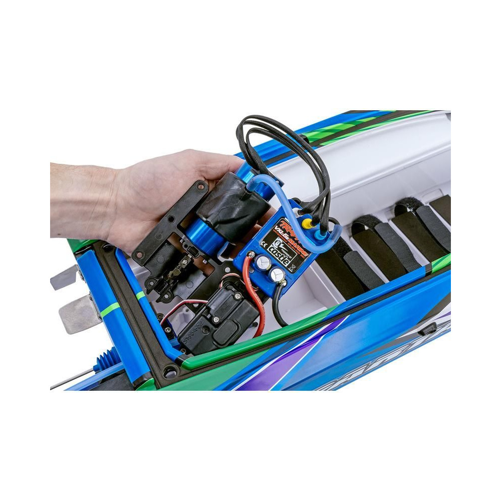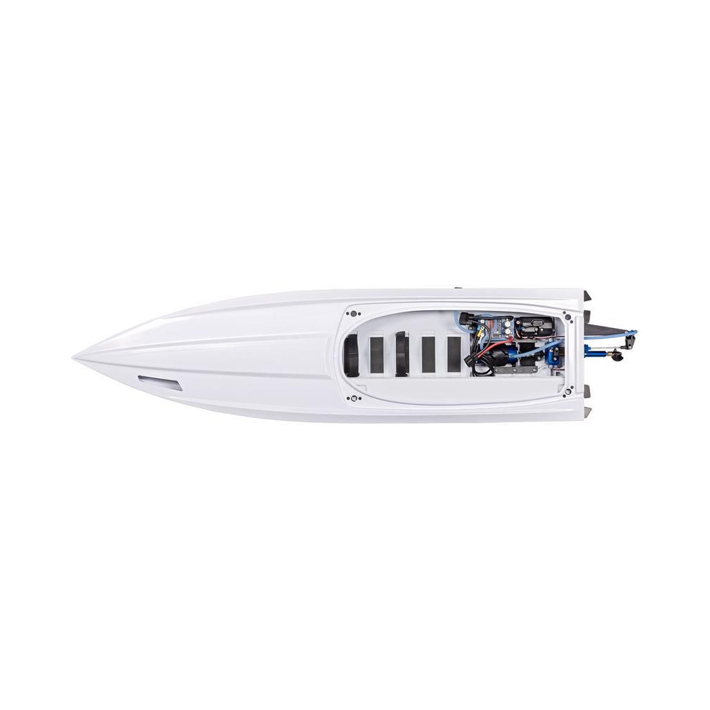 Rendkívül erős és gyors RC modell Traxxas Spartan SR 36" AC motorral és vízhűtéssel. Sebessége akár 80 km/h. Exkluzív auto-turn funkció felborulás esetén. Mély-V hajótest a precíz és gyors kormányzáshoz. Csatolásmentes borítás. TSM elektronikus stabilizátor.