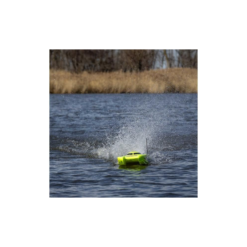 Tartalmaz egy Spektrum SLT2 2 ,4 GHz-es 2 csatornás adó és egy hajóállvány a karbantartáshoz vagy bemutatáshoz. Csak adj hozzá 4S LiPo akkumulátorokat (2x 2S 5000mAh) és egy kompatibilis töltőt, és máris indulhatsz a vízre (az akkumulátorok és a töltő külön megvásárolható).