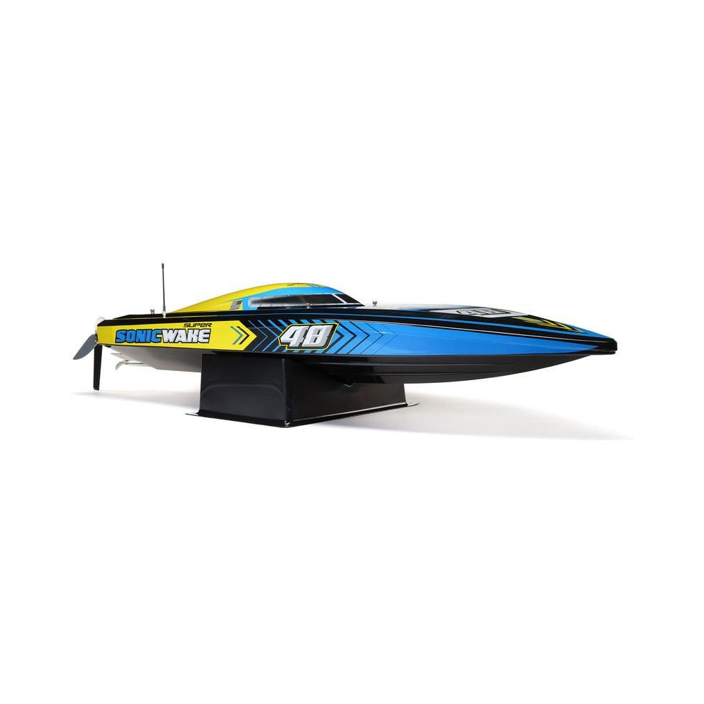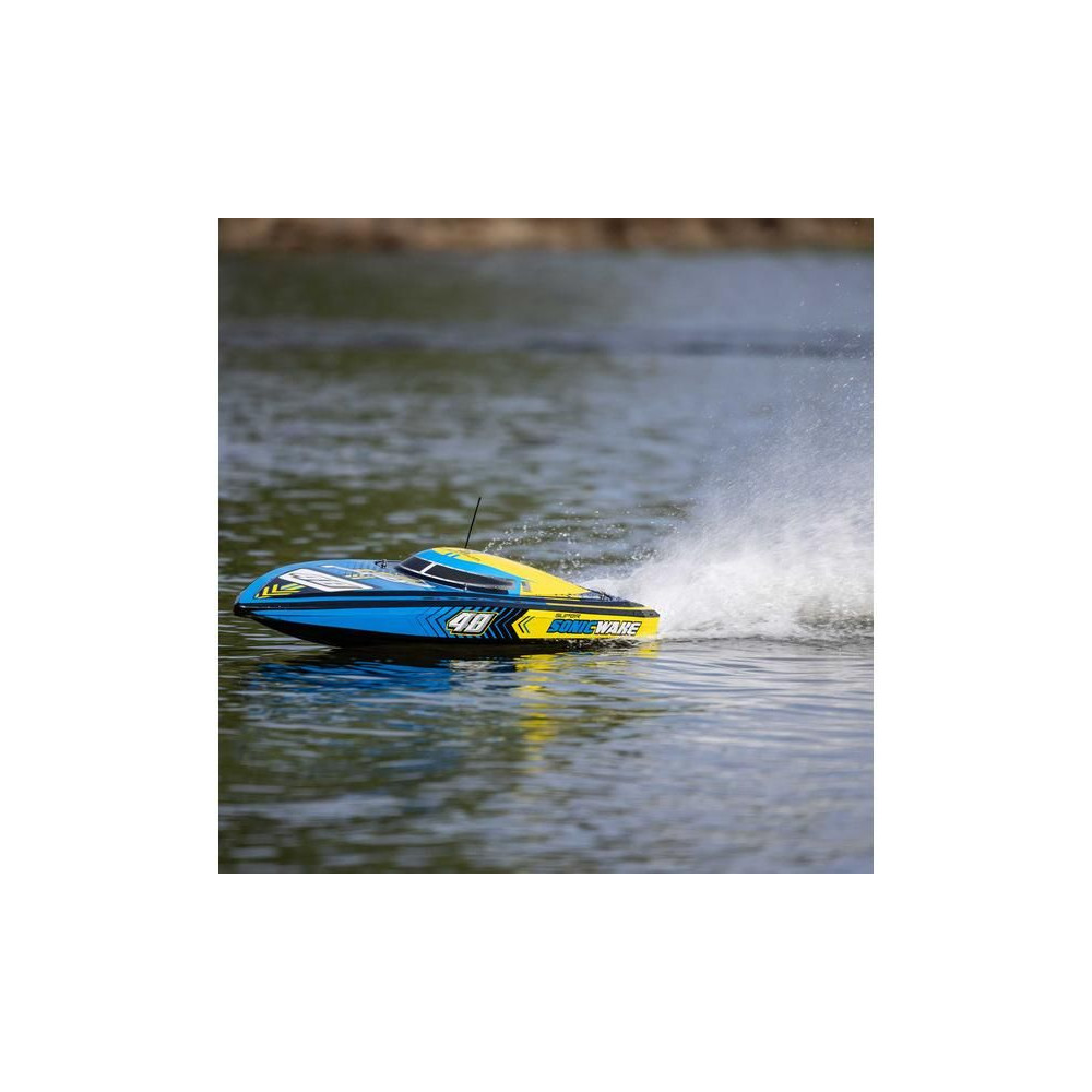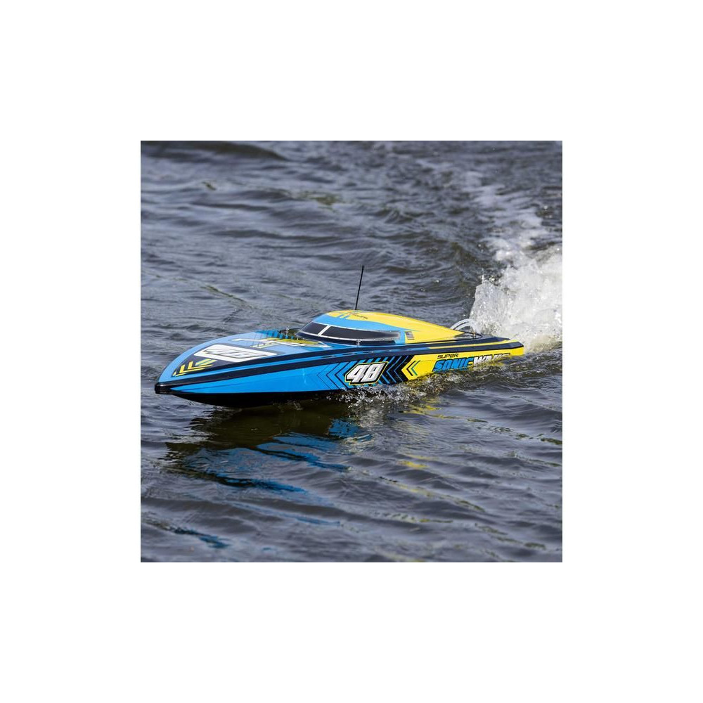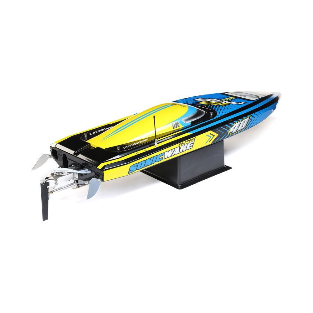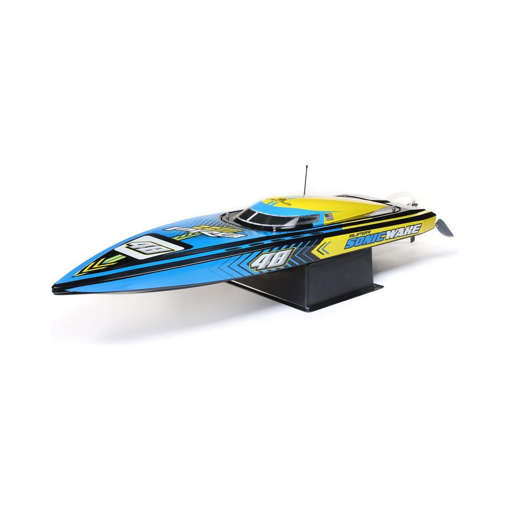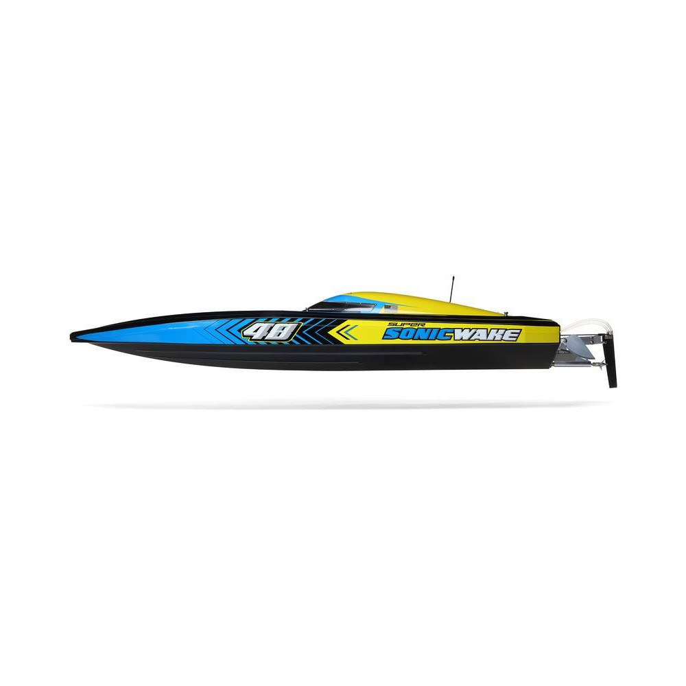 Az erős ABS hajótestnek köszönhetően a Super Sonicwake 48" csónak rendelkezik a szükséges tartóssággal, hogy ellenálljon a legnagyobb ugrásoknak és a legdurvább ütközéseknek is a vízben. Ugyanazzal a lenyűgöző Deep-V formavilággal rendelkezik, mint a népszerű Pro Boat Sonicwake 36", de feltűnő, szupermenő új grafikával, amely kiemeli a formákat és a vízen lévő képességeket.