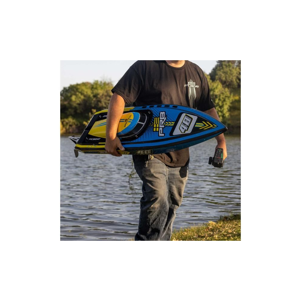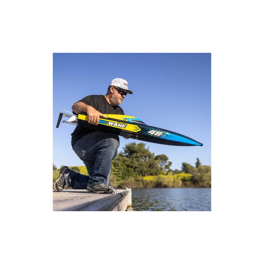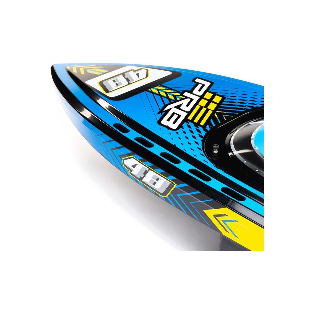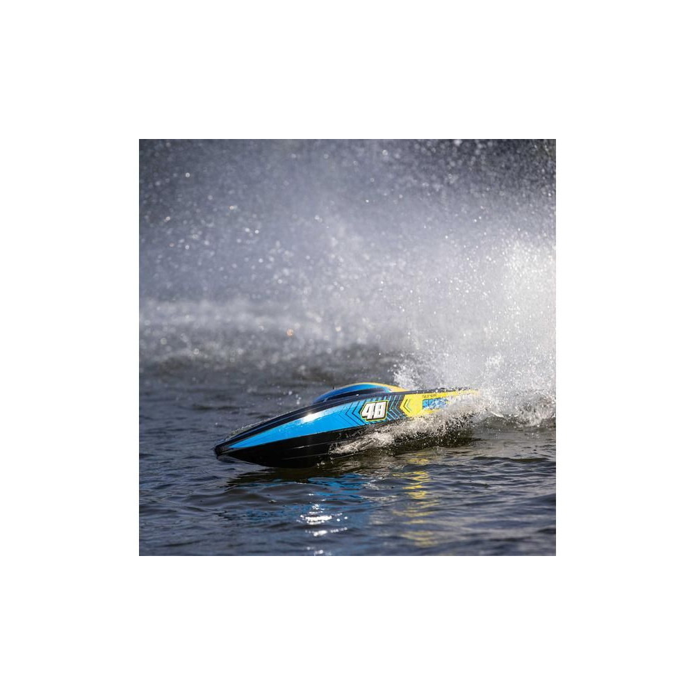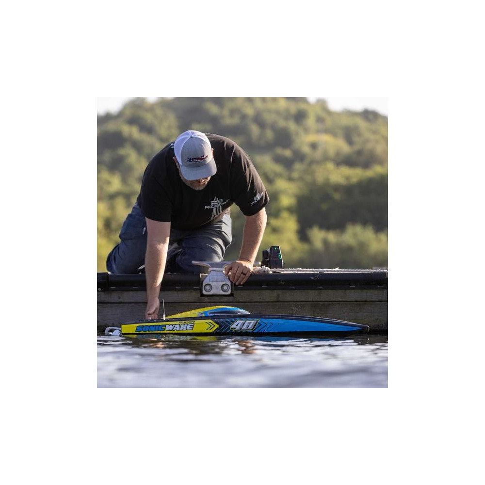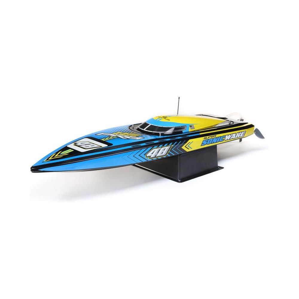 Az erős ABS hajótestnek köszönhetően a Super Sonicwake 48" csónak rendelkezik a szükséges tartóssággal, hogy ellenálljon a legnagyobb ugrásoknak és a legdurvább ütközéseknek is a vízben. Ugyanazzal a lenyűgöző Deep-V formavilággal rendelkezik, mint a népszerű Pro Boat Sonicwake 36", de feltűnő, szupermenő új grafikával, amely kiemeli a formákat és a vízen lévő képességeket.